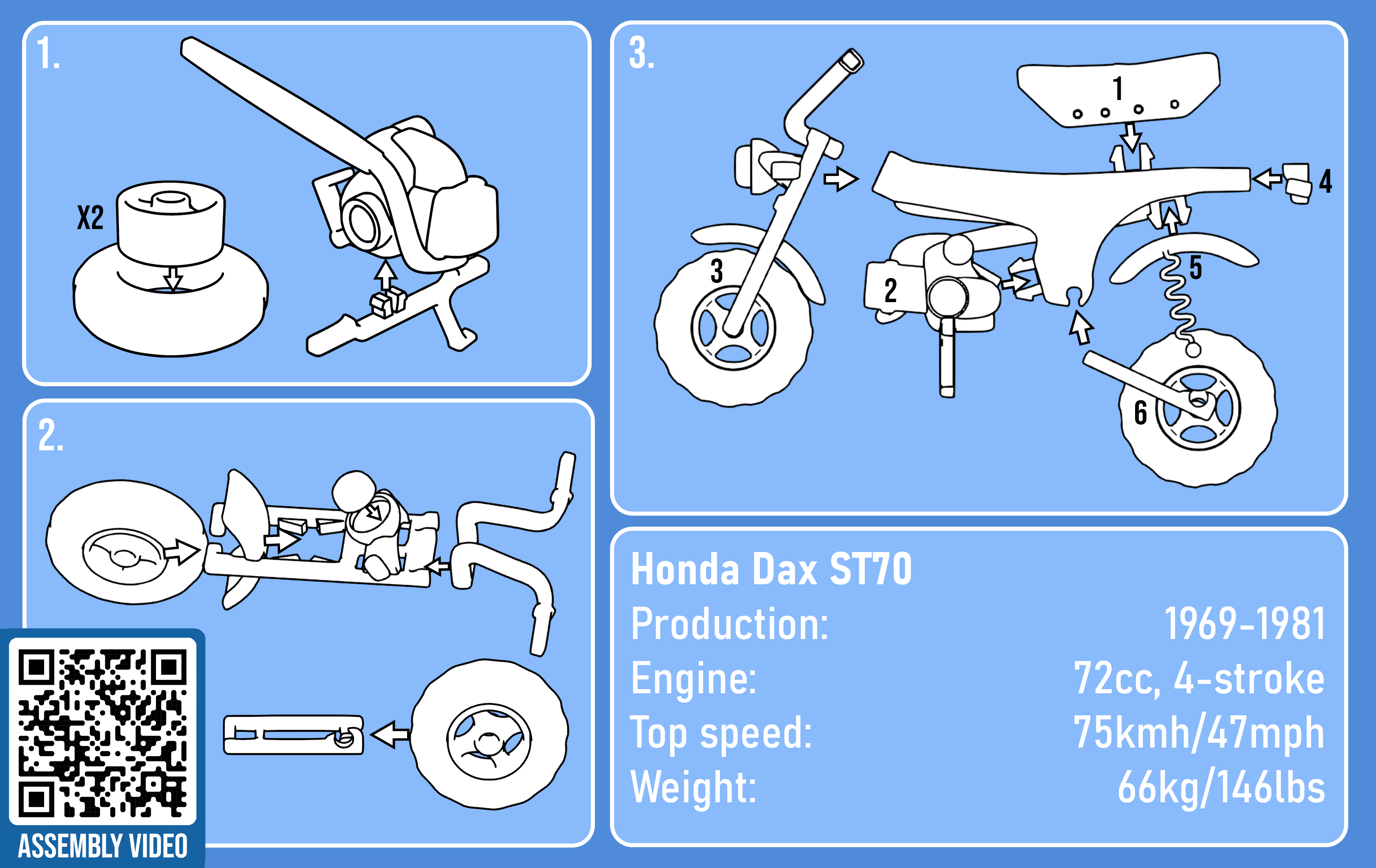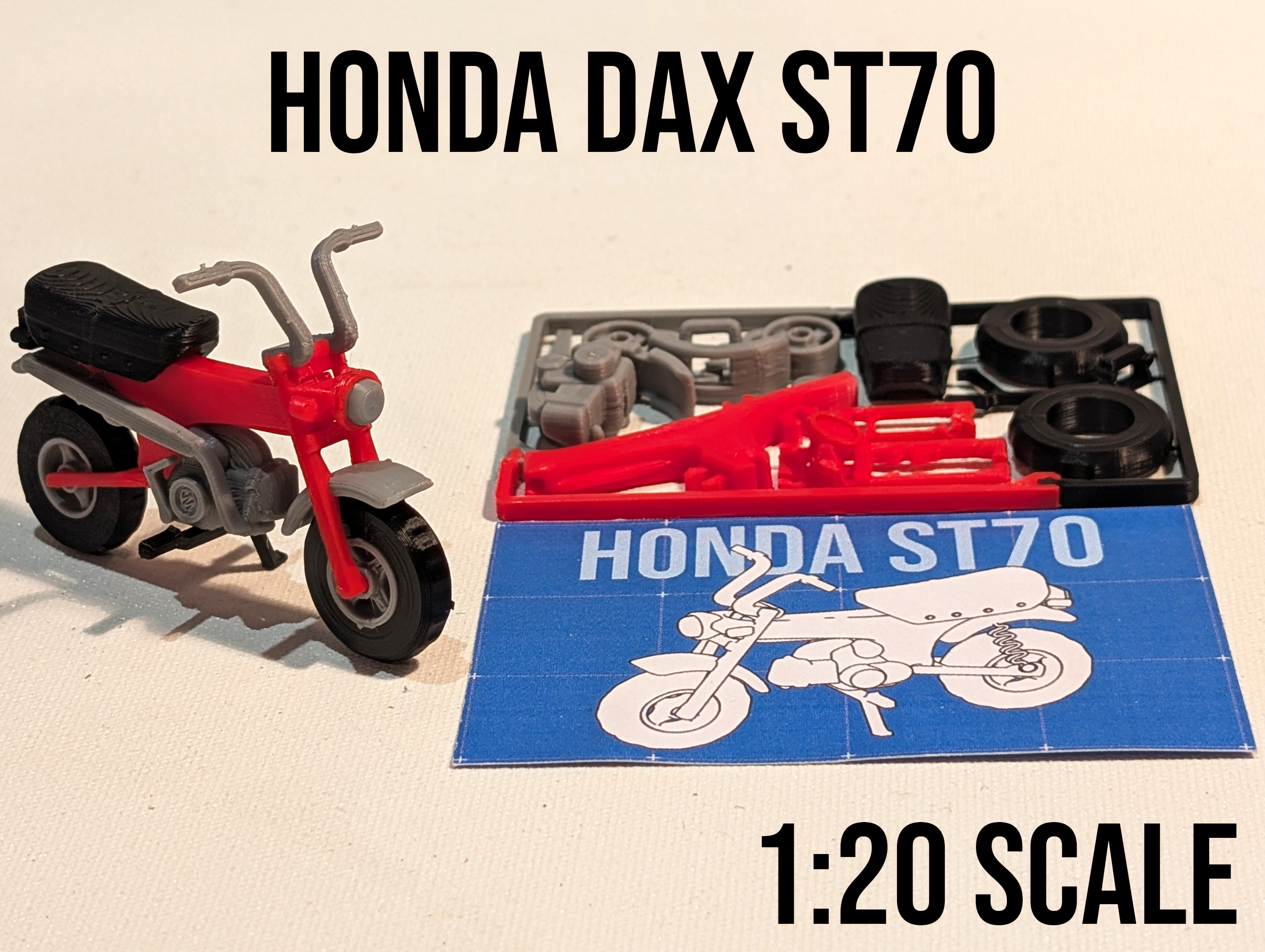 Mô hình tỉ lệ 1:20 đa sắc màu của chiếc xe Honda Dax cổ điển, đựng trong bộ kit kích cỡ thẻ tín dụng. Đây là sản phẩm thứ hai trong bộ sưu tập mô hình xe máy kitcard của mình. Rất mong nhận được phản hồi đóng góp ý kiến.