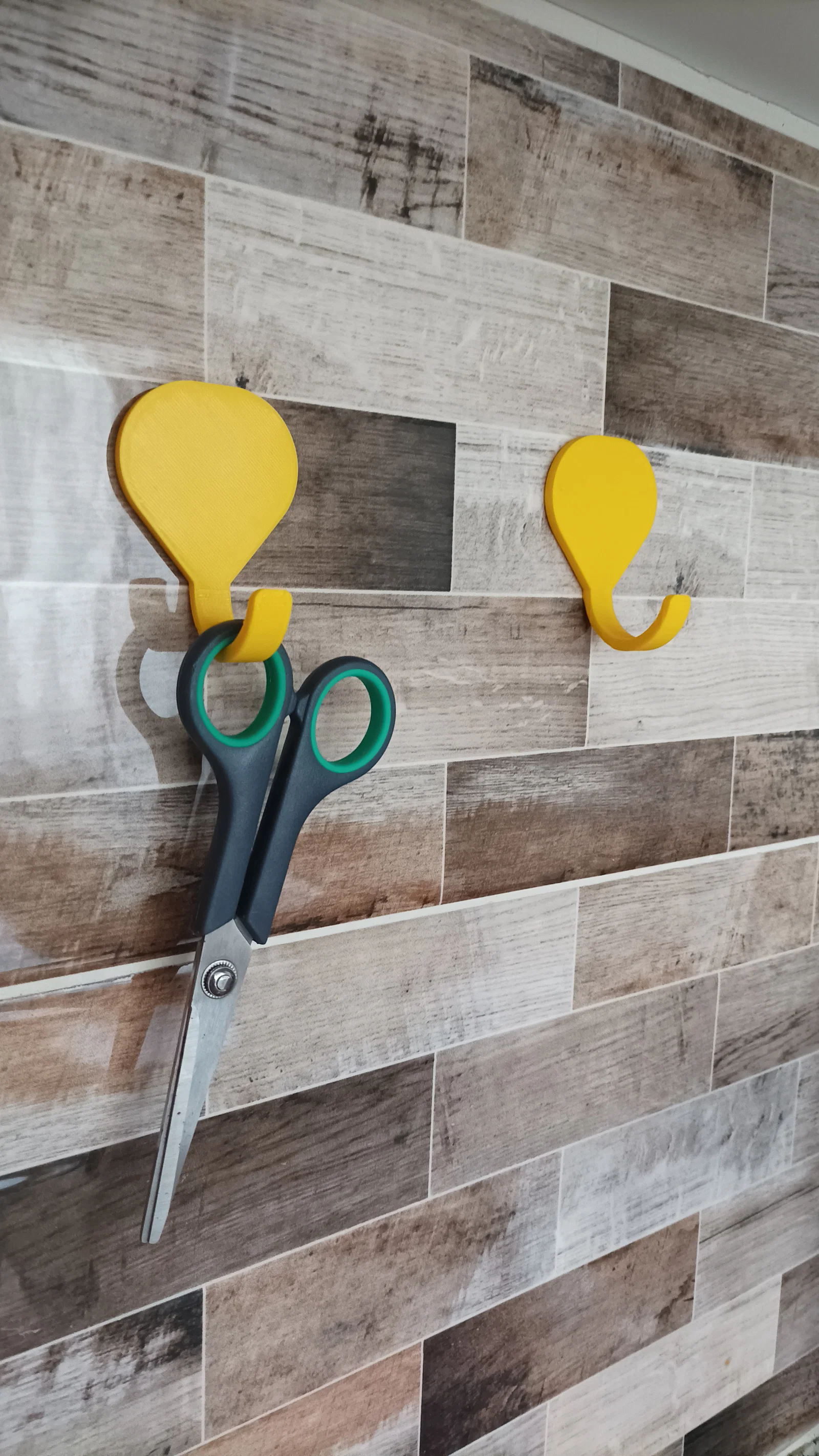 Tui thiết kế cái móc treo đồ nhà bếp để treo kéo, đồ linh tinh khác đó mọi người. Mọi người nhớ dùng băng keo hai mặt để treo lên nha.