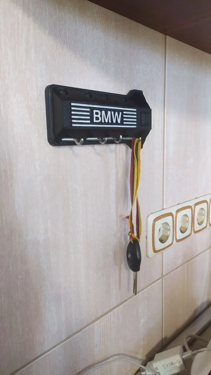 Móc chìa khóa để nhà, tui lấy cảm hứng từ mẫu này - https://cults3d.com/en/3d-model/various/bmw-engine-316i-m43. Mẫu này tui in bằng PLA, dùng mũi phun 0.4, cao độ lớp in 0.3, có dùng ốc M4x8 và ốc khoen. Ngoài ra, có chét keo và xử lý bề mặt. Phần móc nhựa cần khoan lại lỗ với mũi 5.5mm.
