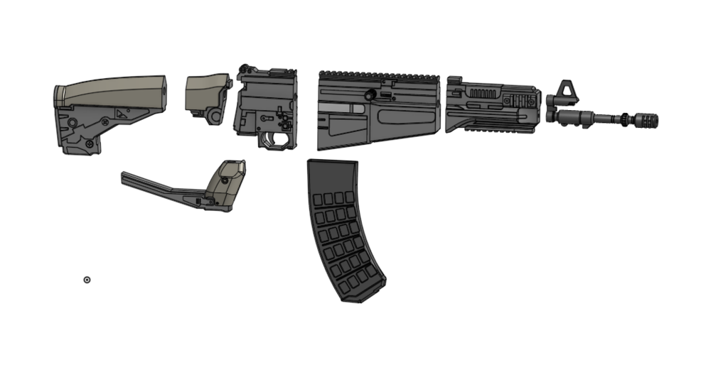 Mô hình AR-2 COYOTE HELLDIVERS 2 này sử dụng thanh tròn 1/2 inch và 1/4 inch, băng đạn có thể tháo rời và được chia làm hai phần để phù hợp với máy in có kích thước nhỏ.