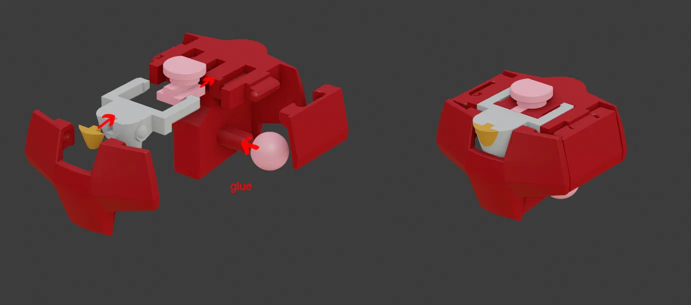 • Cần in tất cả các khớp nối bằng TPU (được đánh dấu trong không gian làm việc bằng vật liệu màu hồng).