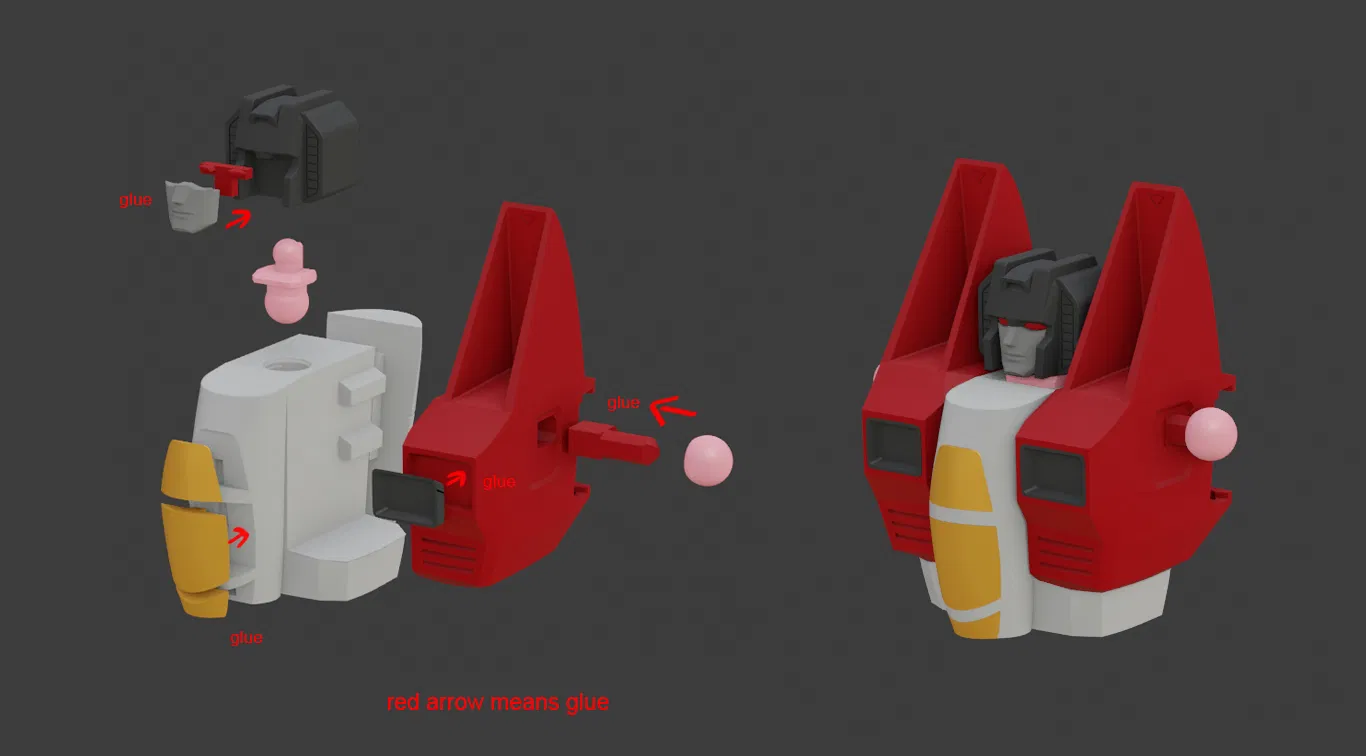 Đây là một bản remix hoàn chỉnh của nhóm G1 Jet Squad của Toymakr3D, biến tấu theo ngoại hình của Starscream trong TF: Devastation. Đã được sự cho phép của người tạo.