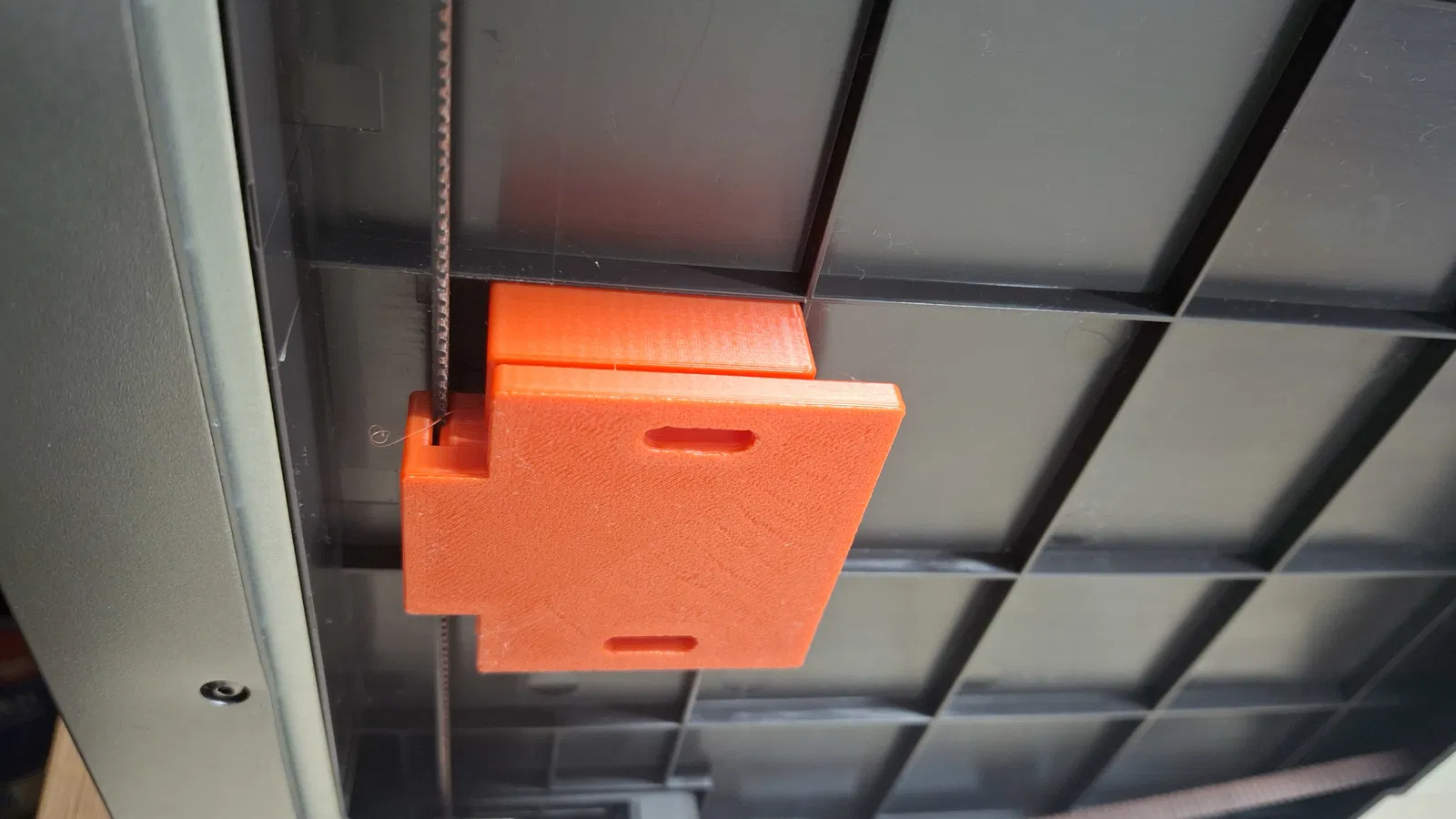 Cái bed máy Anycubic Kobra S1 nhiều khi bị lệch lắm. Dụng cụ đơn giản này giúp canh chỉnh thủ công các điểm bed bằng phương pháp "nhảy dây" (belt skipping). Cái kẹp này khóa dây curoa lại, cho phép bạn xoay từng ốc dẫn hướng riêng biệt để nâng hạ từng điểm kết nối.