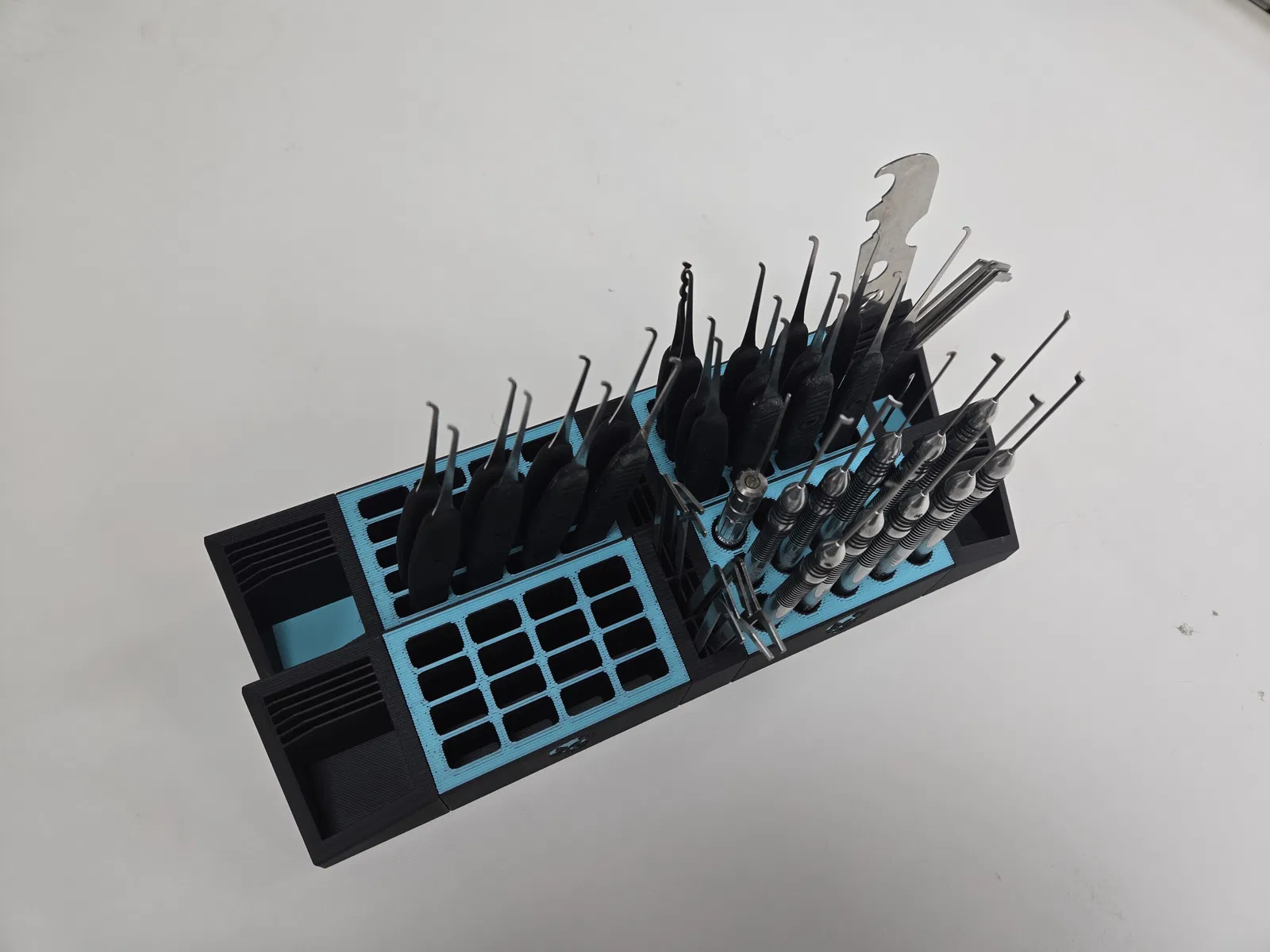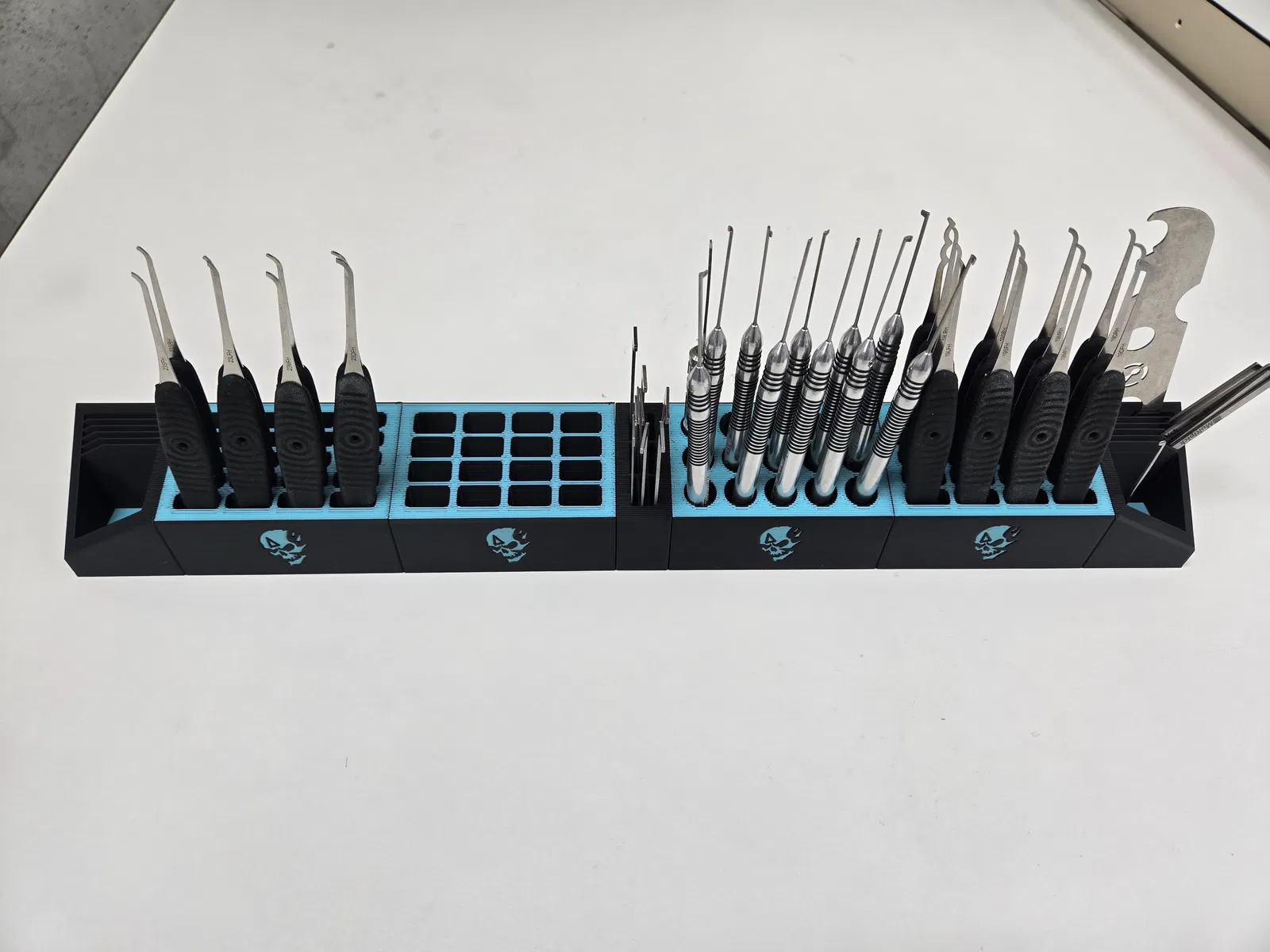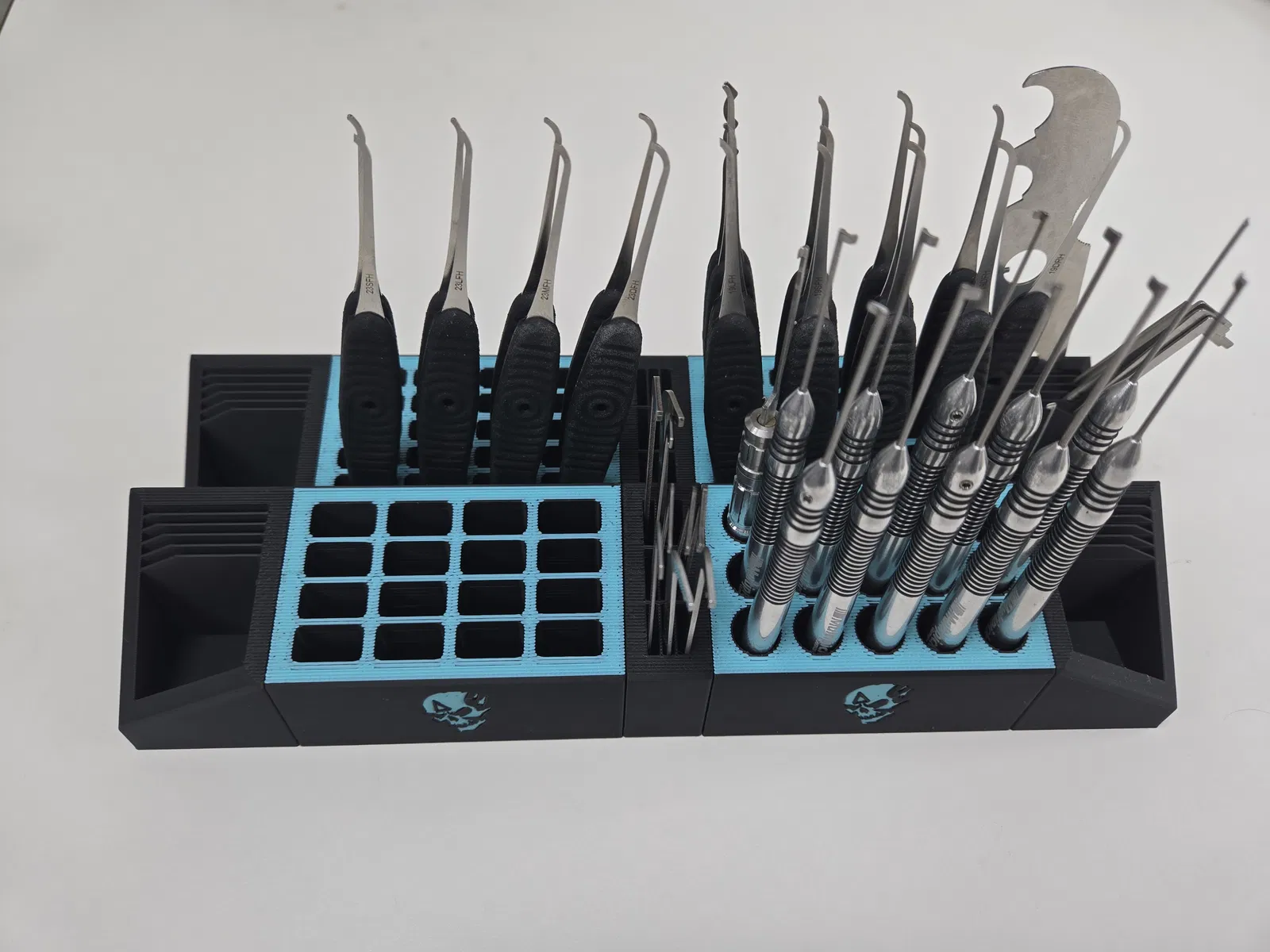 Giải pháp cho việc tổ chức dụng cụ locksport của bạn, với hệ thống mô-đun linh hoạt, tùy chỉnh và có thể mở rộng. Giờ đây với khả năng 2D, bạn có thể kết nối nhiều hàng mô-đun lại với nhau bằng nam châm hoặc chốt in. Hiệu quả về vật liệu và thời gian in, phù hợp với mọi máy in.