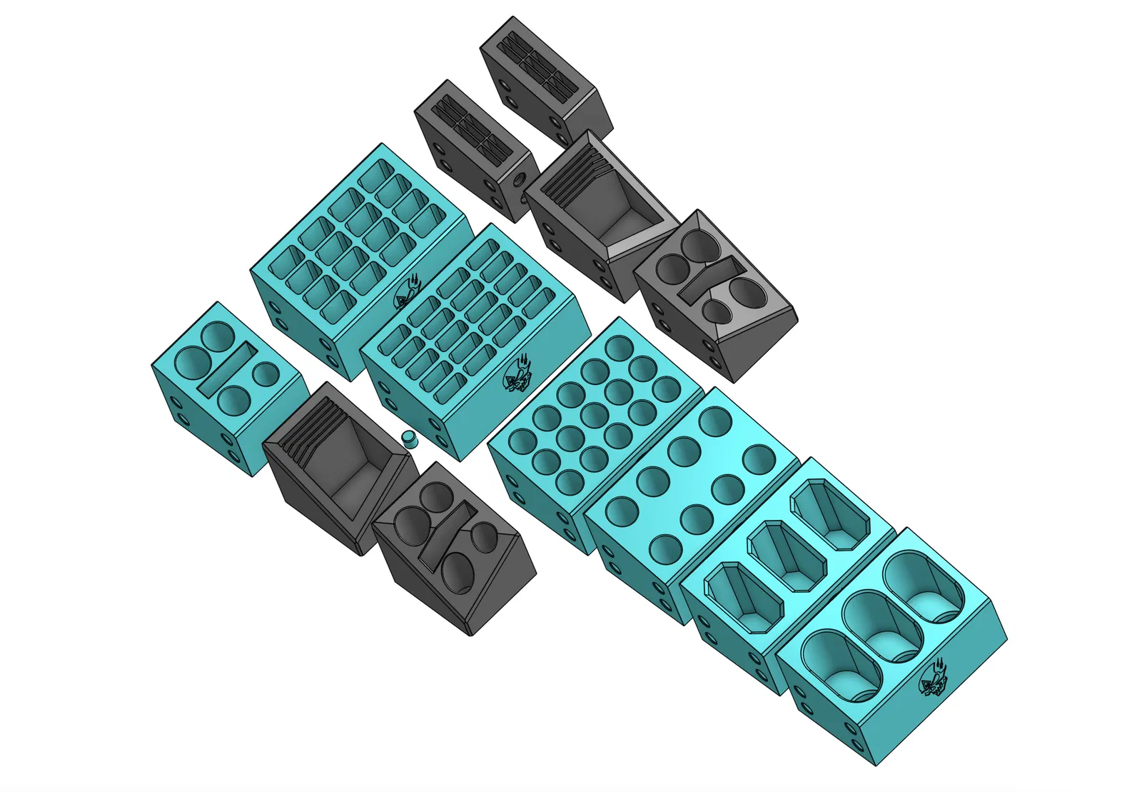 Bạn có ý định tạo mô-đun tùy chỉnh của riêng mình để sử dụng trong hệ thống này? Tuyệt vời! Tôi đã cung cấp các tệp STEP của mô-đun chung, nơi phần bên trong của mỗi mô-đun đã được khoét rỗng. Ý tưởng là để bạn dễ dàng bắt đầu và lấp đầy khoảng trống bằng sáng tạo của riêng mình.