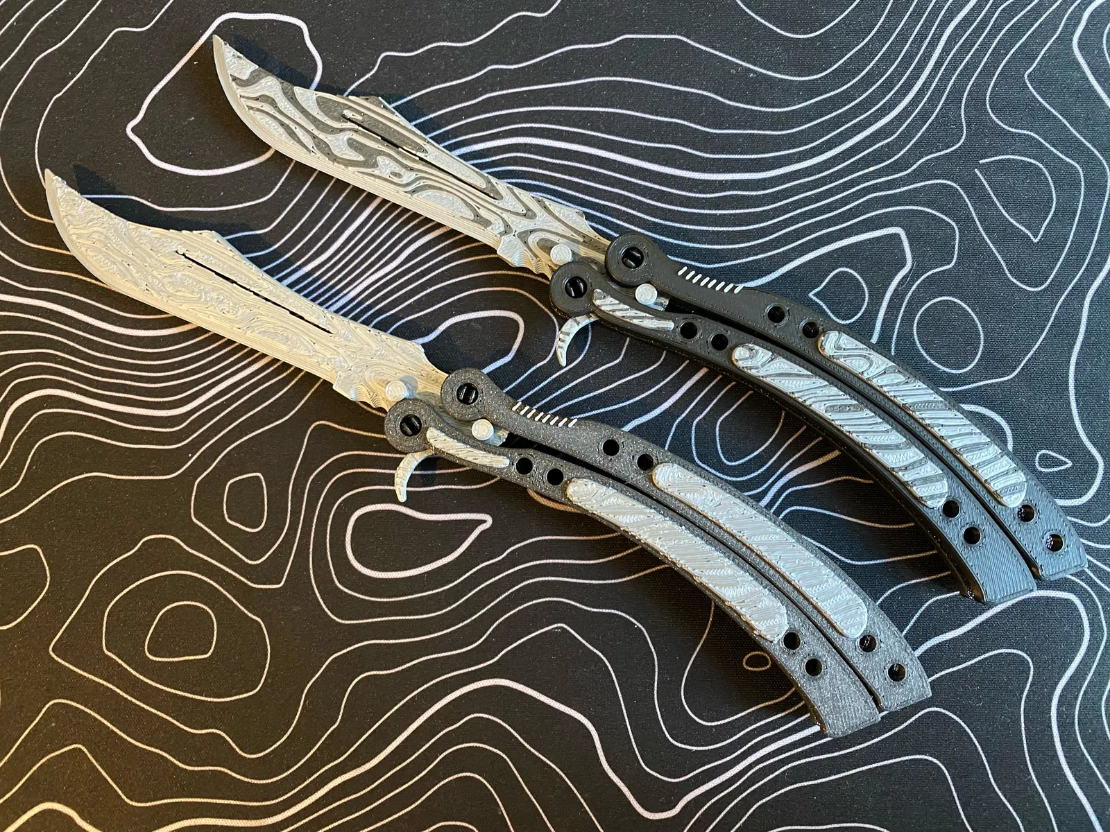 Phiên bản Thép Damascus của dao bướm trong game Counter-Strike. Thiết kế lưỡi dao được điều chỉnh để dễ in hơn, giữ nguyên hình dáng đặc trưng của dao bướm CS. Có thể in 2 màu bằng cách đổi màu theo độ cao.