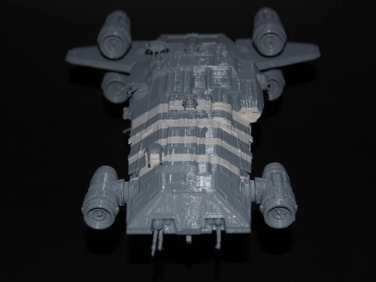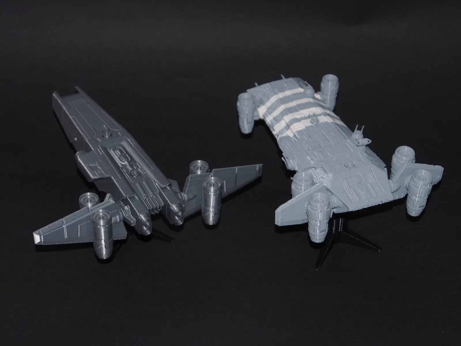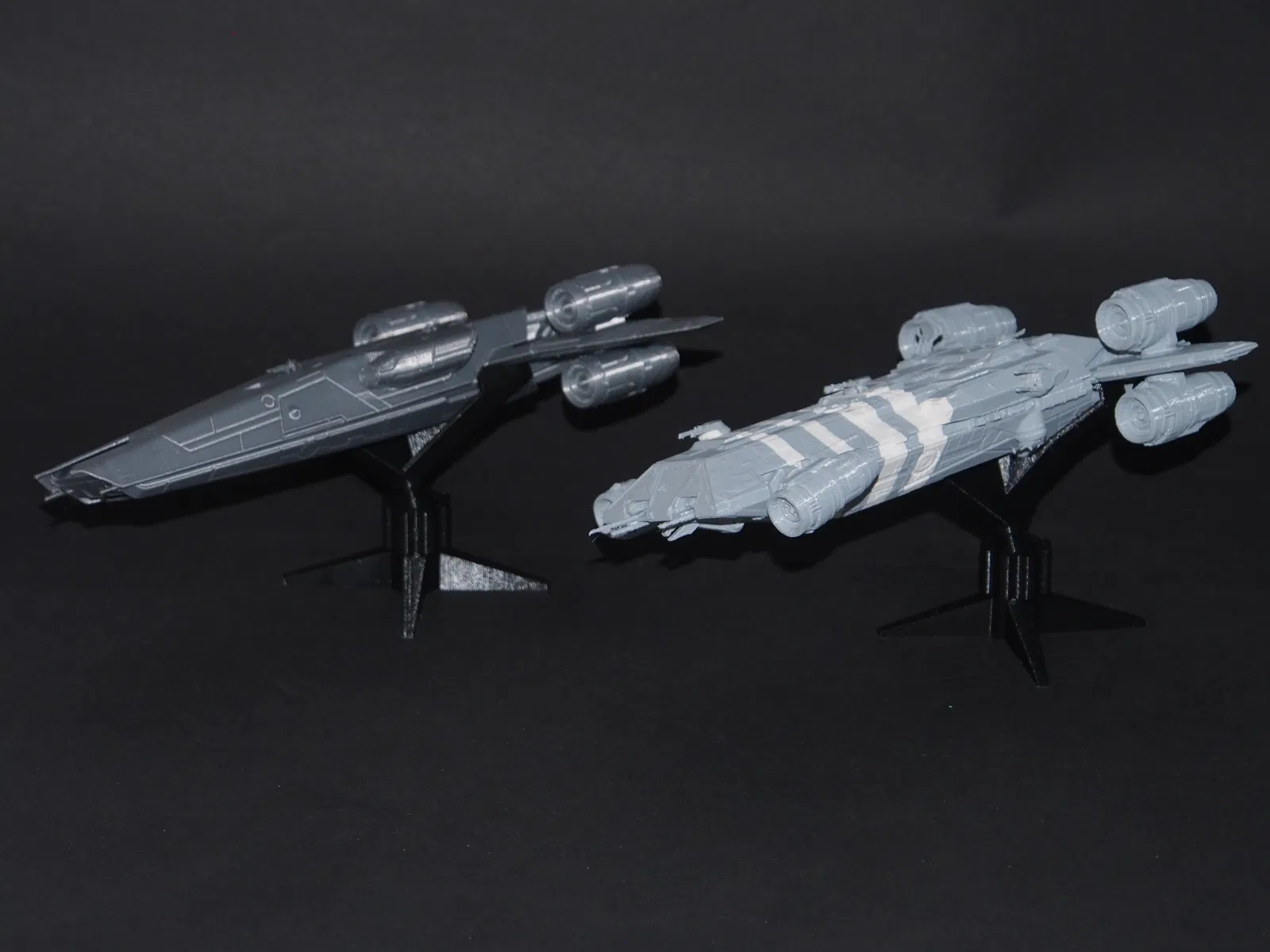 Mô hình tàu Onyx Cinder từ Star Wars: Skeleton Crew, với cánh và tháp pháo di chuyển được. Bao gồm cả hai phiên bản tàu cộng hòa và tàu cướp biển. Tỷ lệ 1:270, kích thước chi tiết được cung cấp. Hướng dẫn in chi tiết với yêu cầu giá đỡ và thay đổi màu sắc.