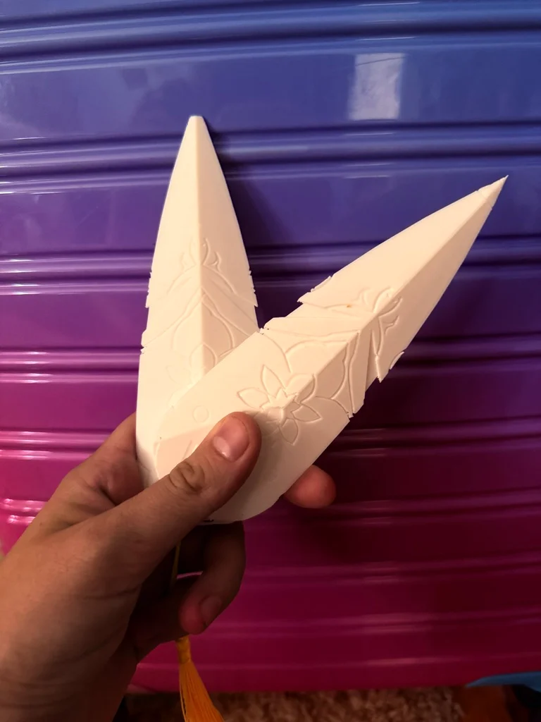Tôi thấy kết quả tốt nhất là dựng đứng mấy cái lưỡi này lên để in, như vậy sẽ ít bị ảnh hưởng bởi vật liệu đỡ hơn hẳn. Đây là cách tối ưu để in "Lưỡi Kiếm Zoe" mà không cần lo lắng về vết hằn của support.