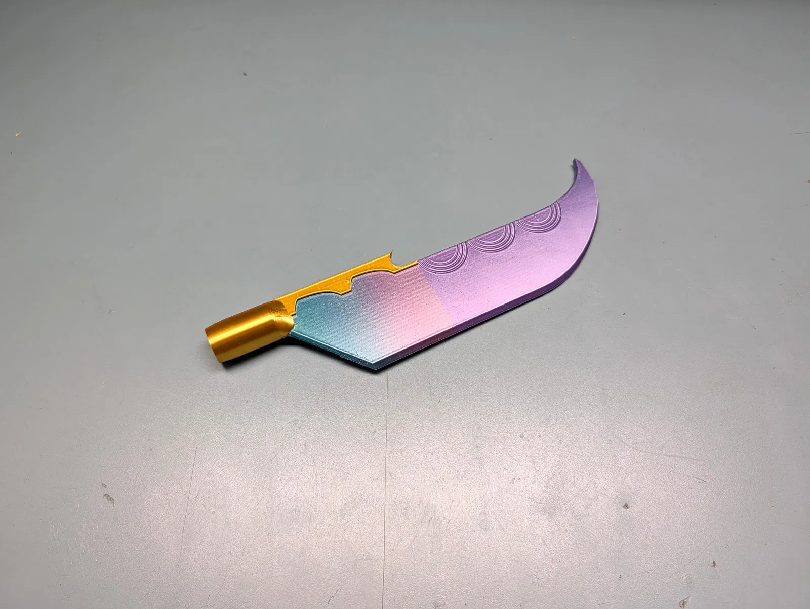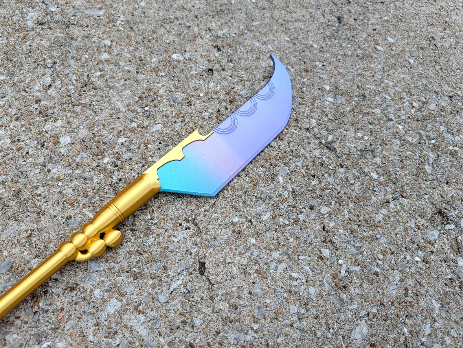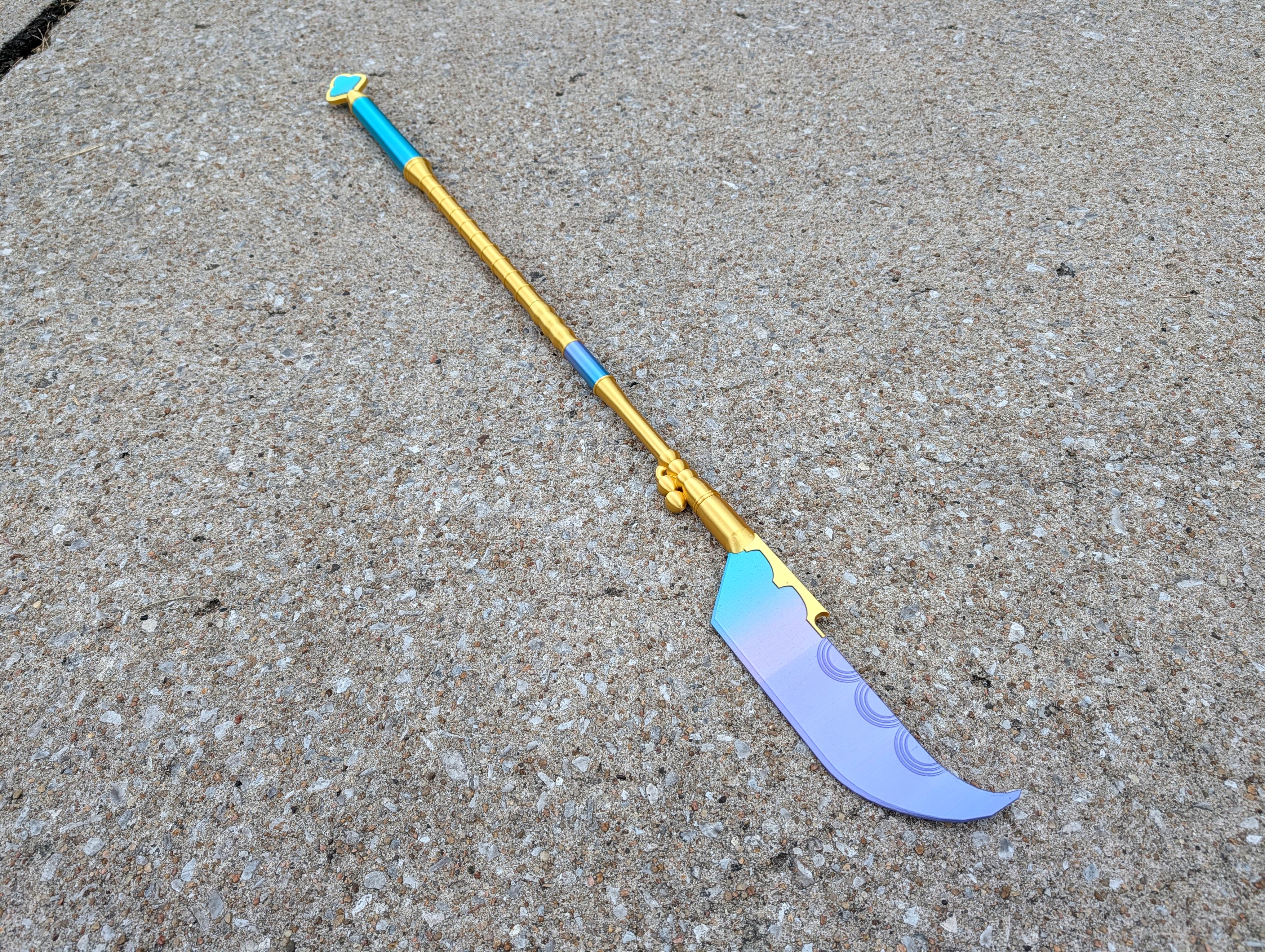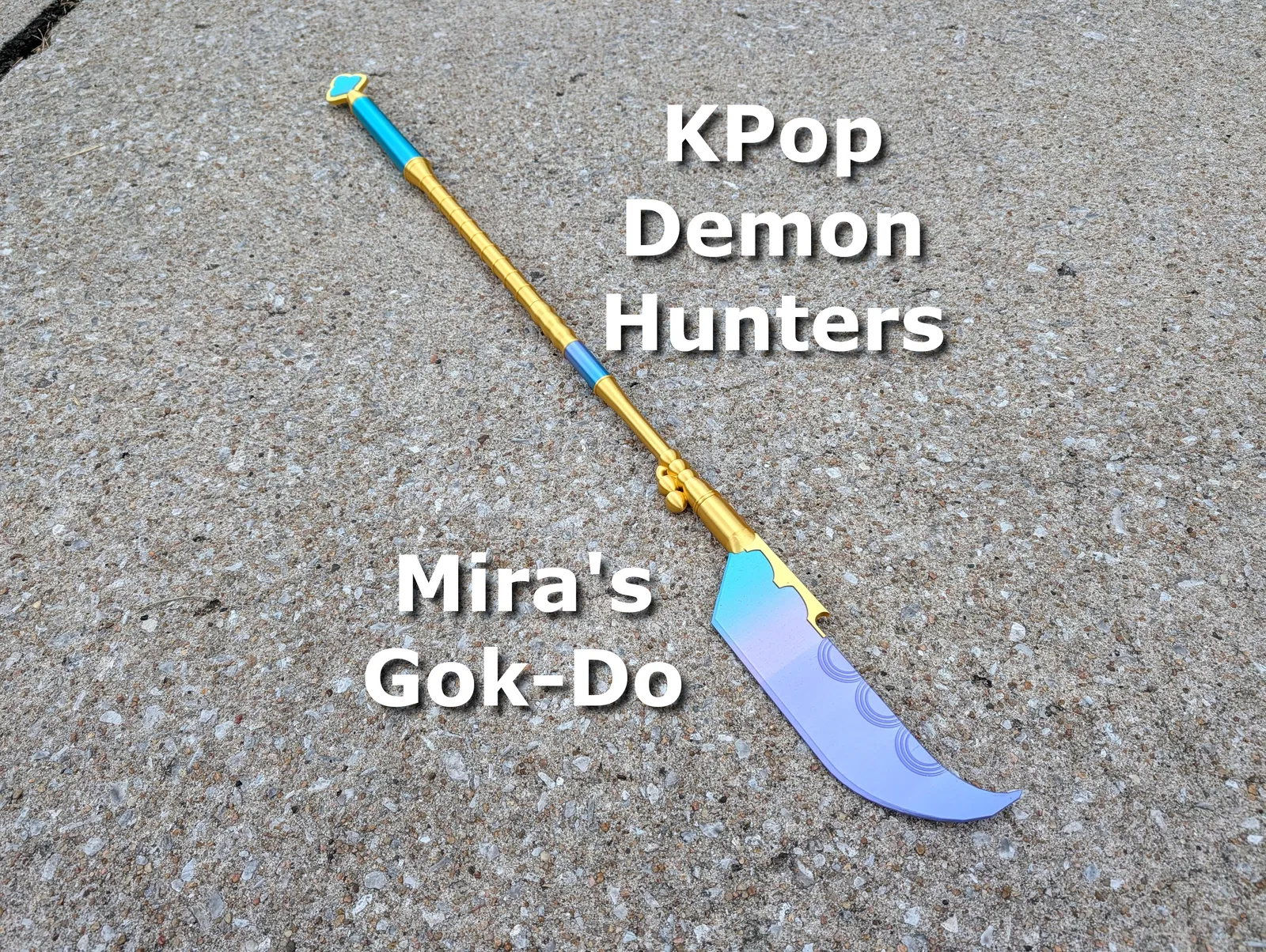 Mô hình 3D chân thực của Gok-Do, vũ khí của Mira trong KPop Demon Hunters. Hoàn hảo cho cosplay, trang phục Halloween và trưng bày. Dễ lắp ráp, có thể tùy chỉnh kích thước. In ấn vui vẻ với các sợi filament lụa hoặc kim loại!