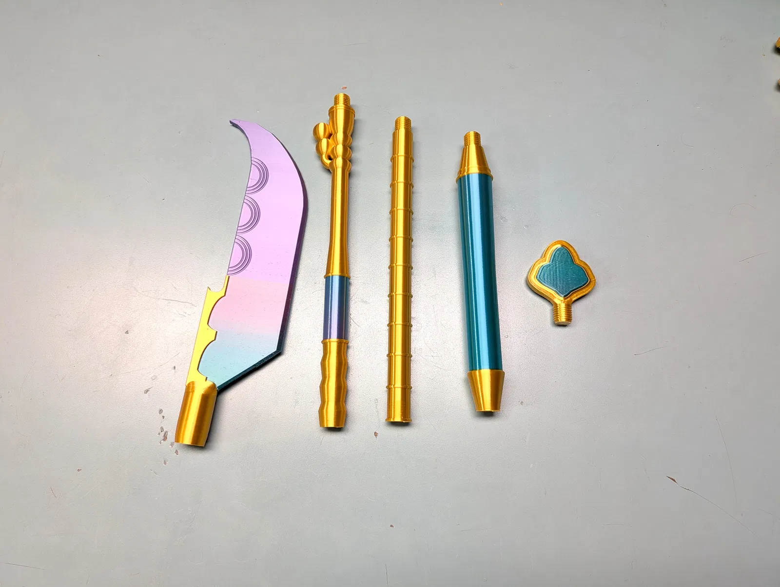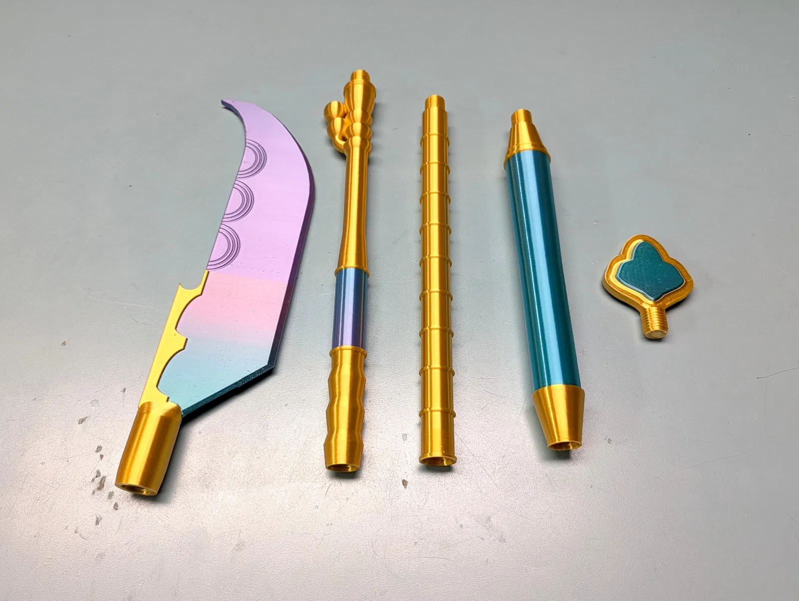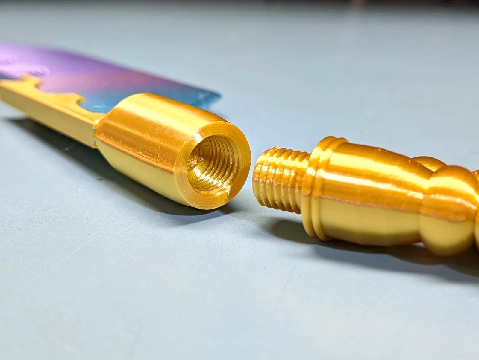Đối với màu xanh lam/tím, tôi đã dùng CookieCad Mermaid Silk PLA, và tôi đã dùng Sunlu Gold Silk PLA cho màu vàng.
