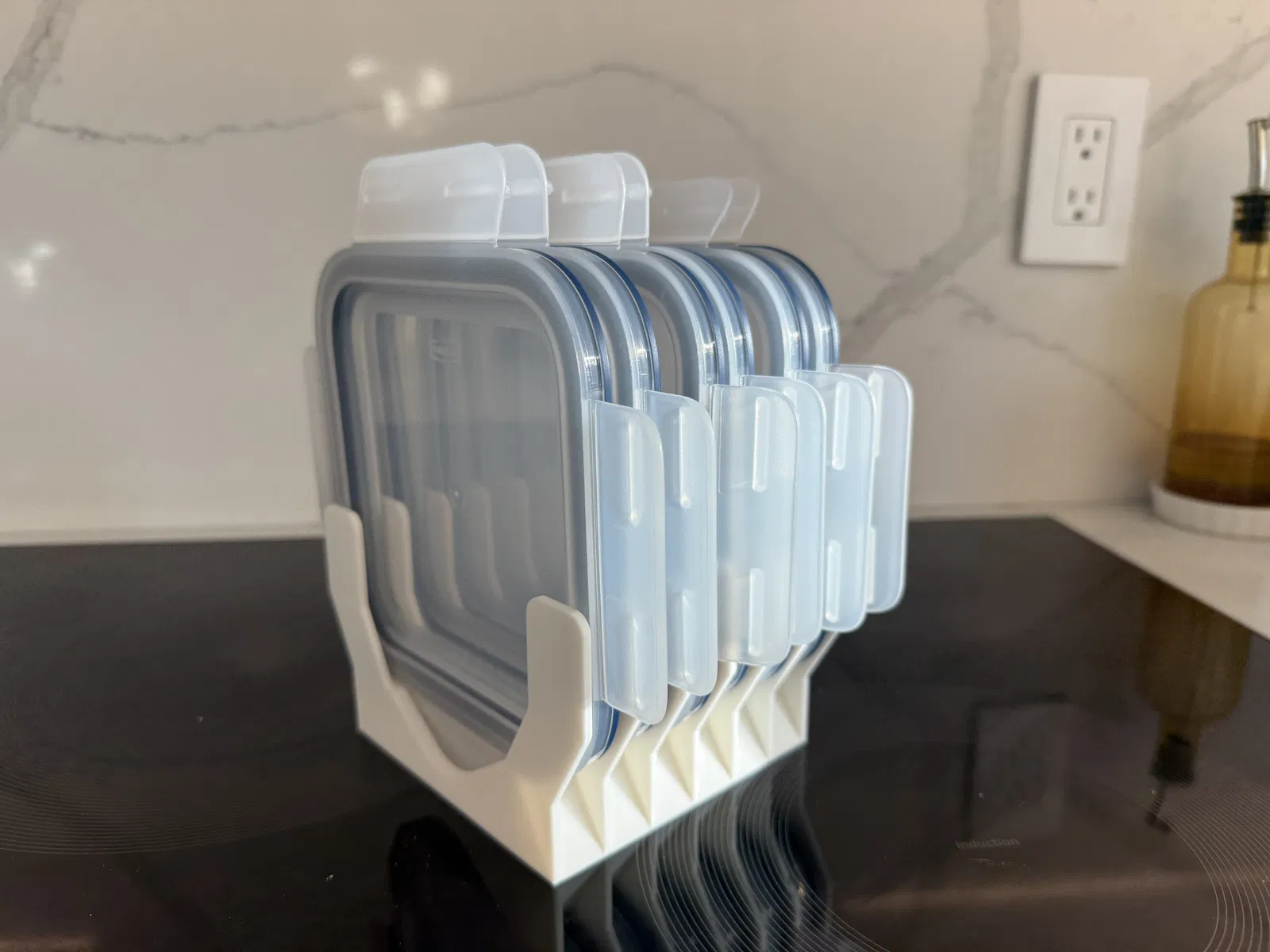 Đế đựng 6 nắp IKEA 365, có thể dùng cho các loại nắp khác. Thiết kế để đặt trong hộc tủ và lấy đồ từ phía trên hoặc từ bên hông.