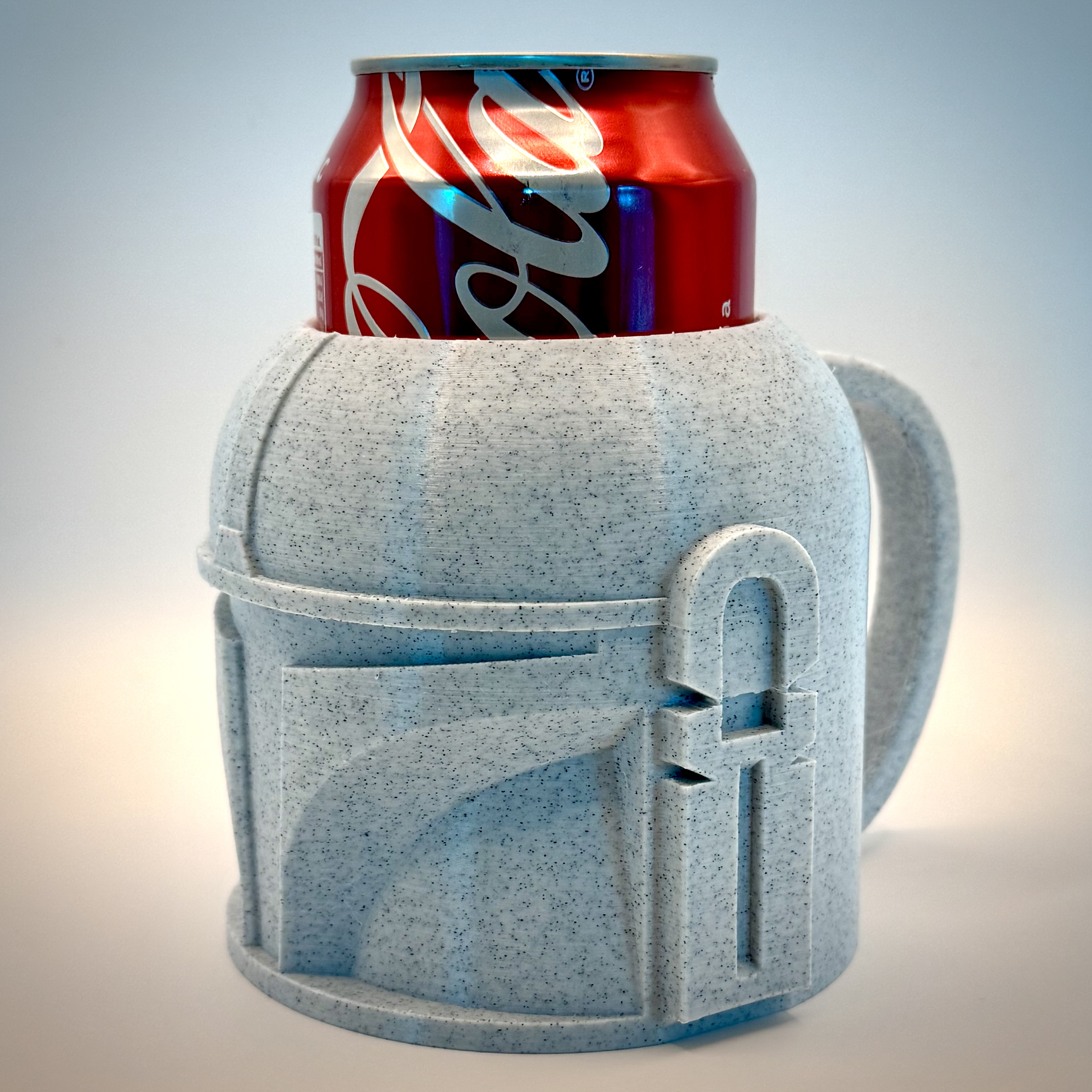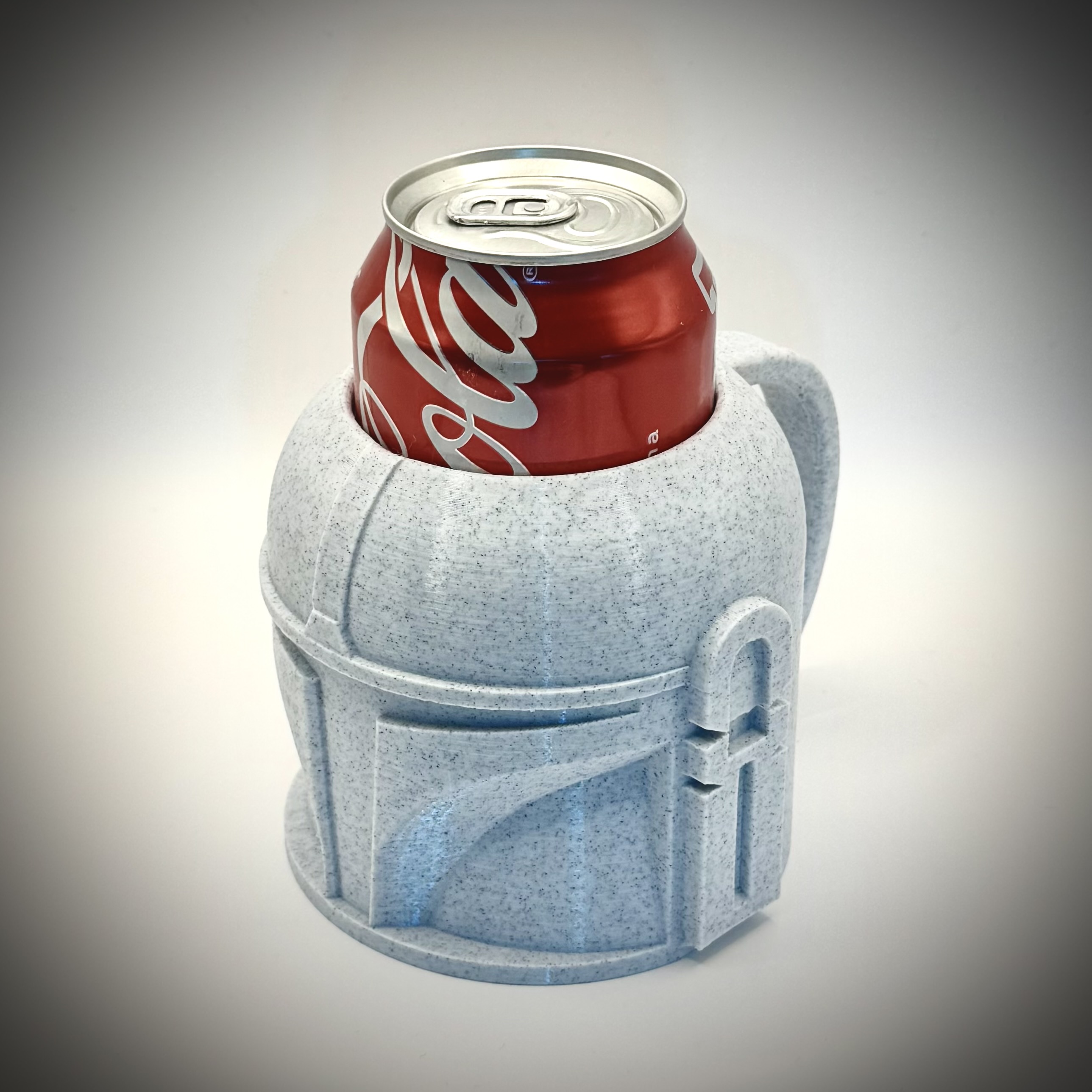 Mẫu nón trụ phong cách Mandalorian dùng để giữ lon bia 375ml (12 oz). Có thể điều chỉnh kích thước cho các loại lon khác nhau. Tay cầm phía sau tiện lợi cho cả người thuận tay phải lẫn tay trái.