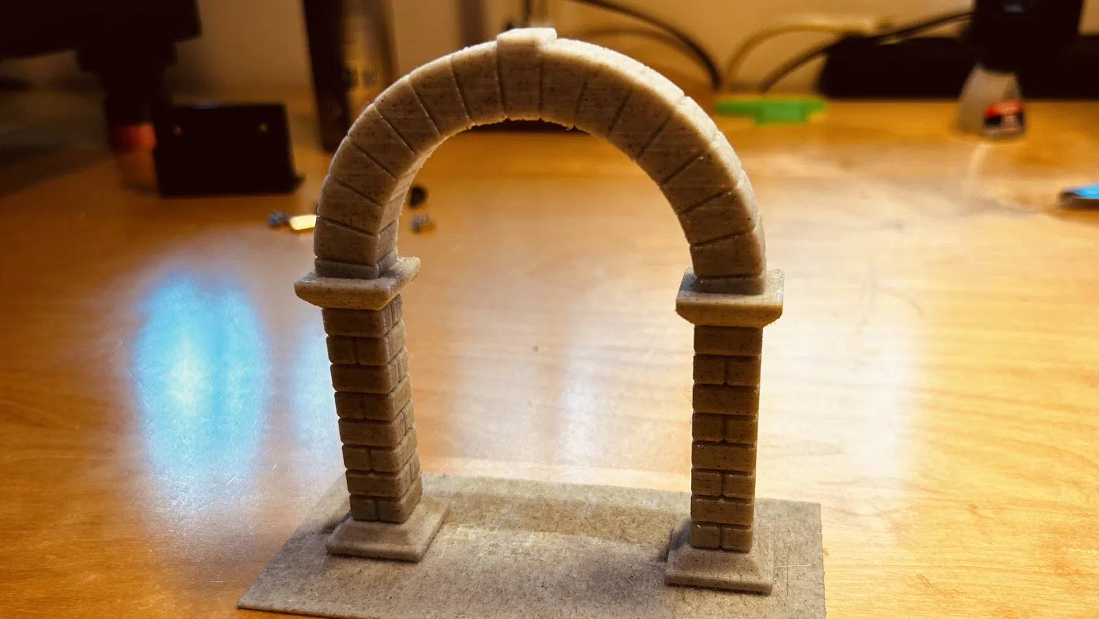 In bằng sợi PLA giả đá granite. Tui cố tình nhấn mạnh viên đá đỉnh vòm (Clave), các viên đá ghép vòm (dovelas) và đường nét của loại vòm này.
