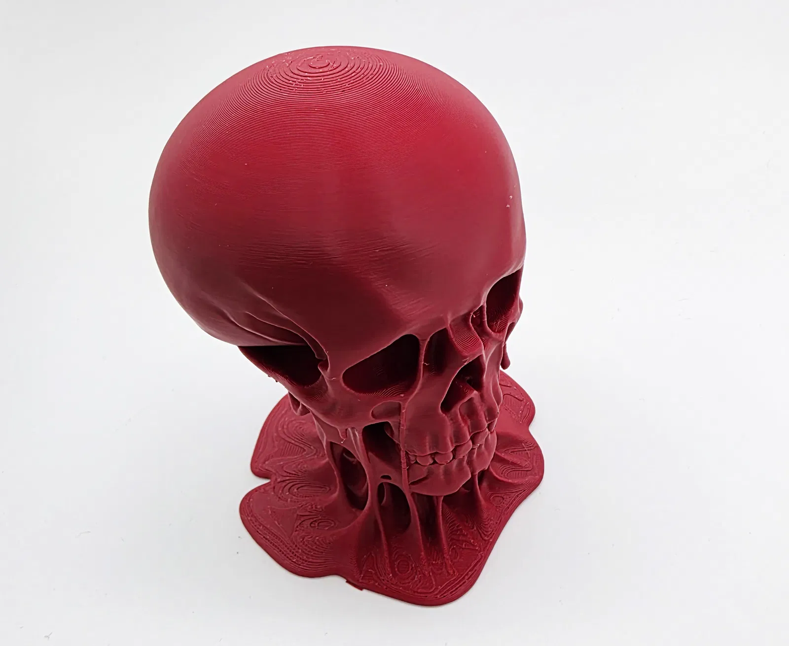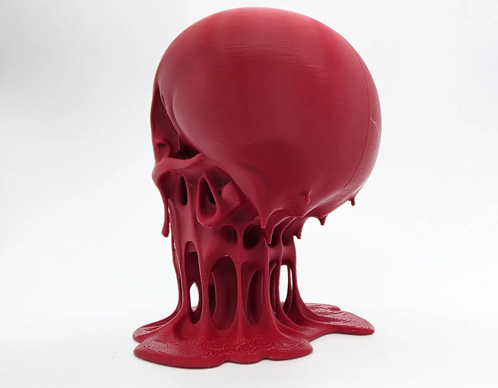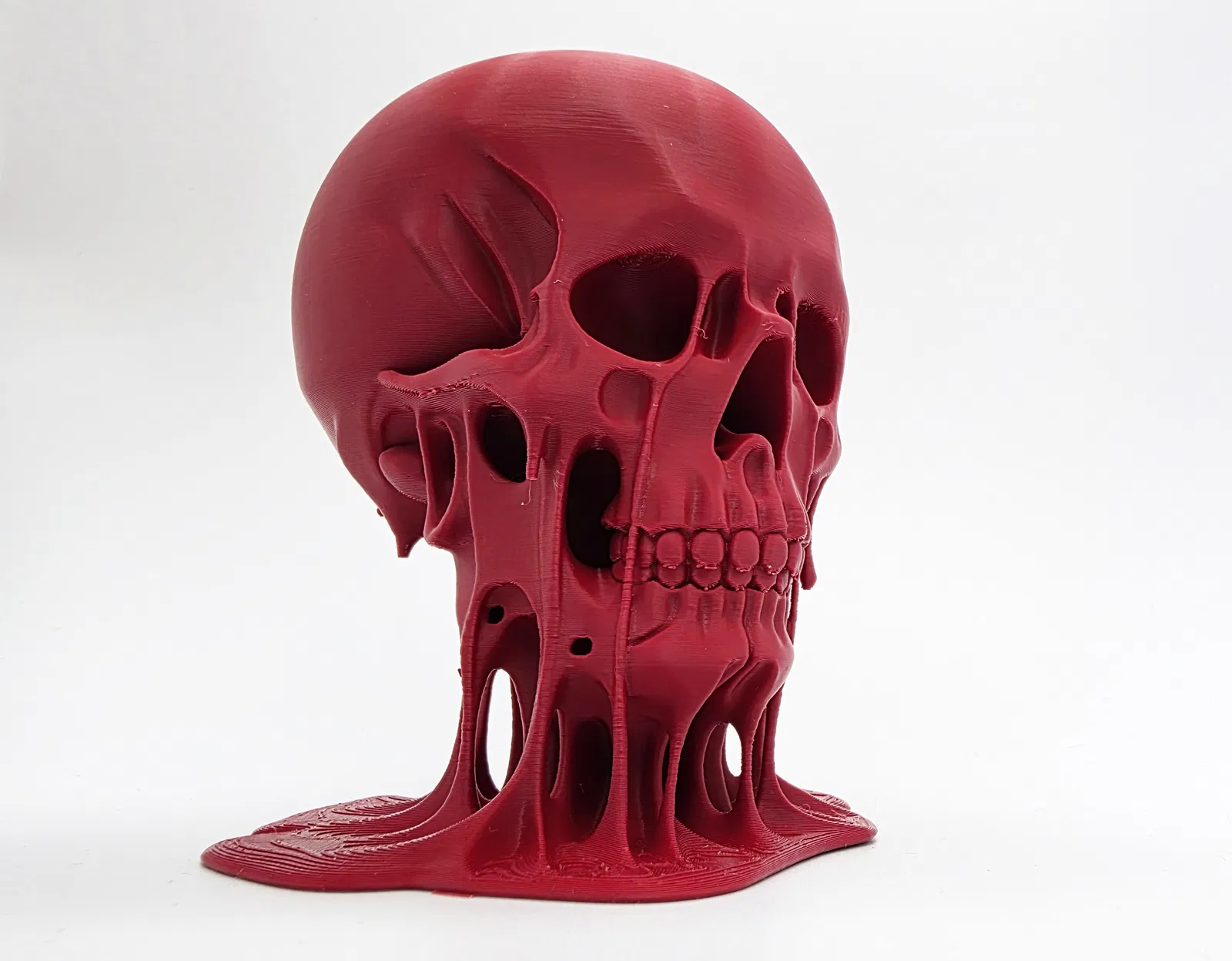 Nói thiệt nha, mấy cục nhựa nhỏ nhỏ chảy xuống của mẫu đầu lâu này có thể bị gãy nhưng khó thấy lắm. Cân nhắc đây là một bài benchmark để test nha. Mô hình này có thể in được với tree supports ở đế.