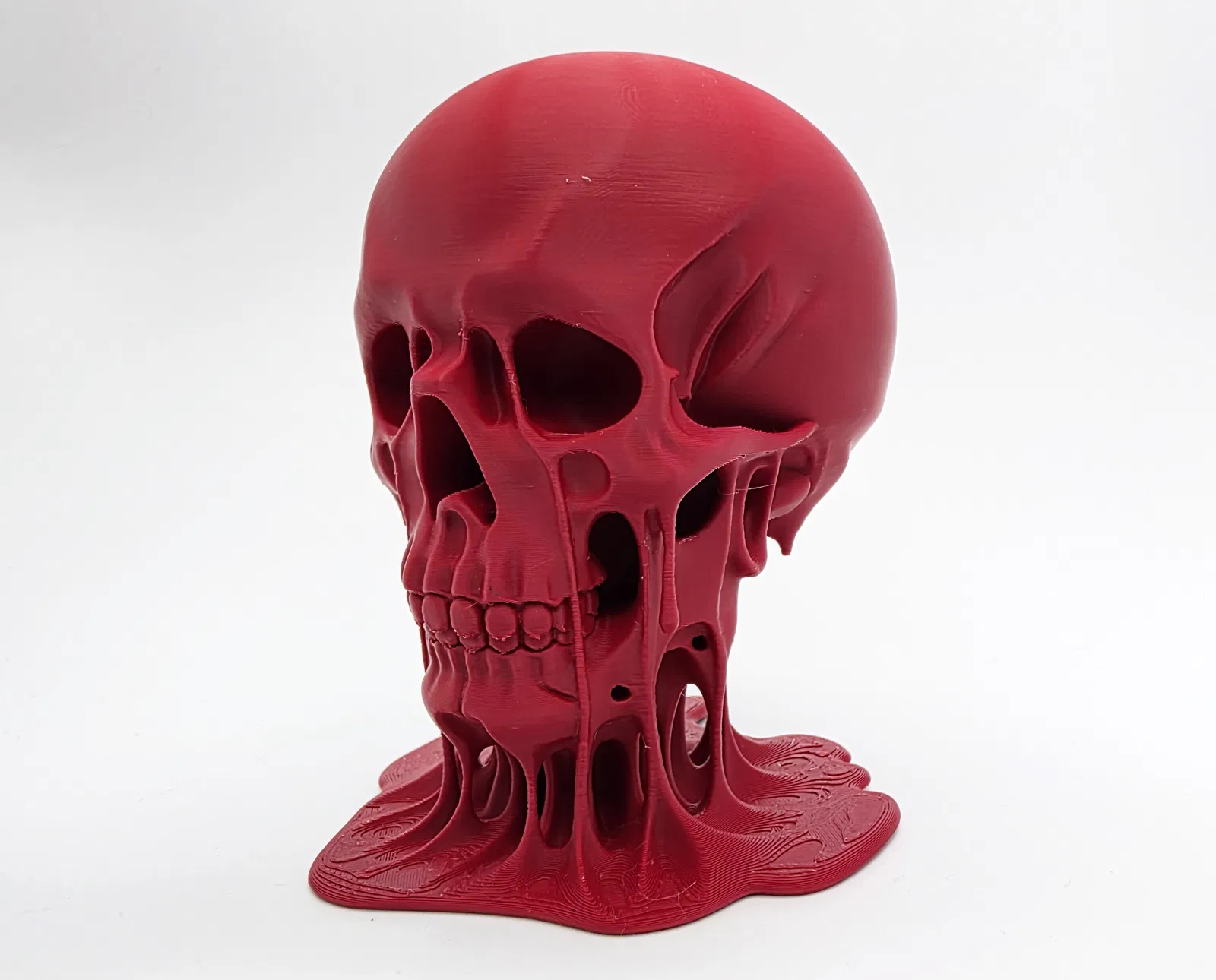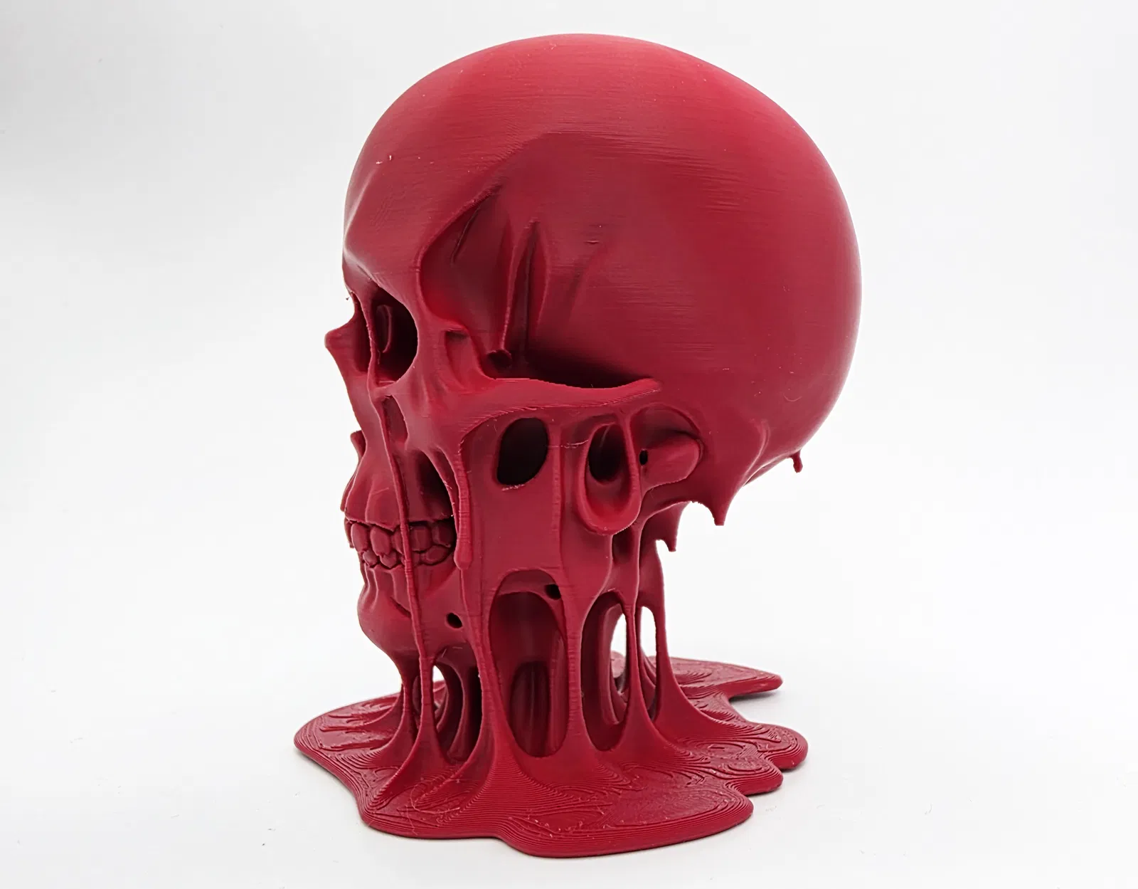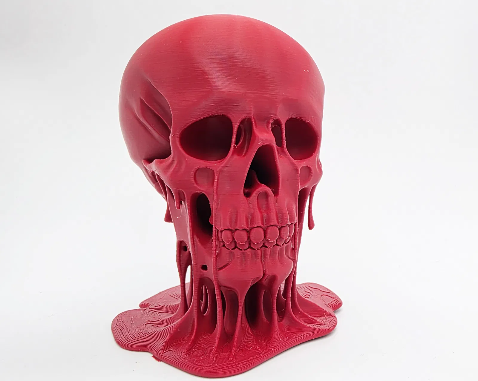 Nói thiệt nha, mấy cục nhựa nhỏ nhỏ chảy xuống của mẫu đầu lâu này có thể bị gãy nhưng khó thấy lắm. Cân nhắc đây là một bài benchmark để test nha. Mô hình này có thể in được với tree supports ở đế.