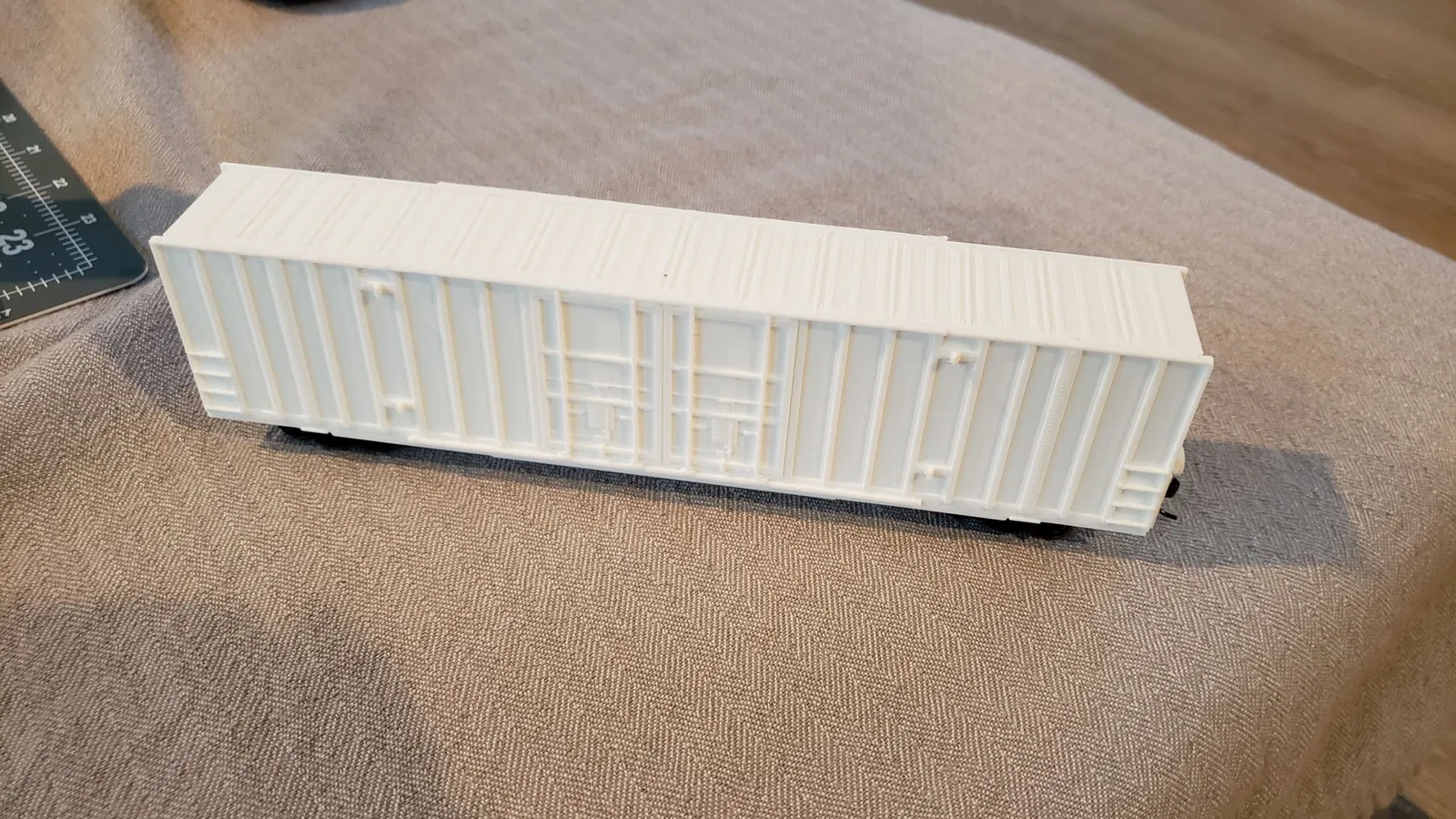 Boxcar sử dụng bánh xe 36" trong thực tế với truck 100 tấn. Truck có thể được tìm thấy tại đây và đã được thử nghiệm để hoạt động với Accurail, Athearn và Walthers. Khi hoàn thành (bao gồm cả truck bánh xe, bánh xe và coupler) chiếc xe rất nhẹ và tôi khuyên bạn nên thêm khoảng 50 gram trọng lượng.