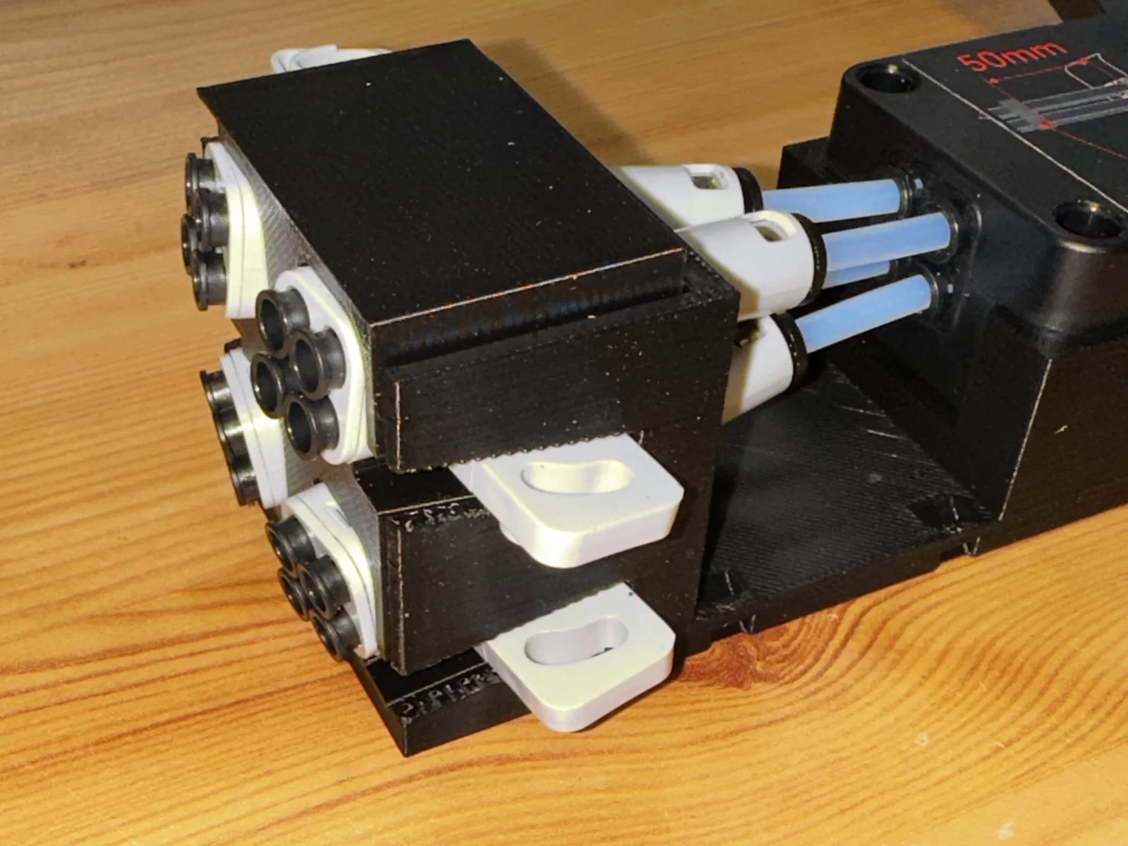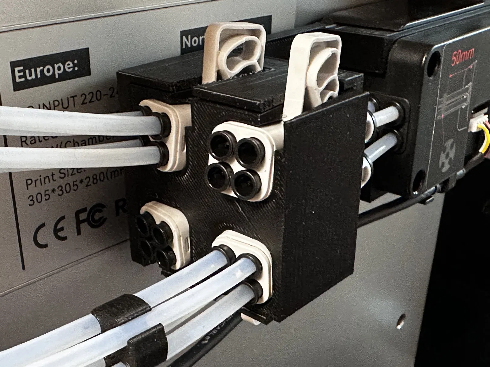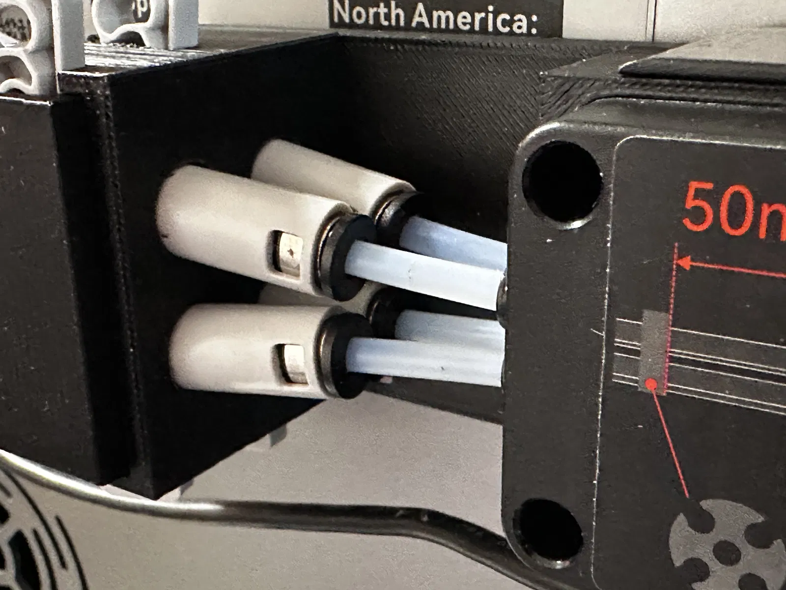 🛠 Lắp Bộ chuyển đổi Góc cạnh Các bộ chuyển đổi giờ đây được lắp vào theo một góc, thẳng hàng hoàn hảo với bốn đầu vào PTFE của bộ phận cấp sợi → giảm lực cản và đường dẫn sợi gọn gàng hơn.