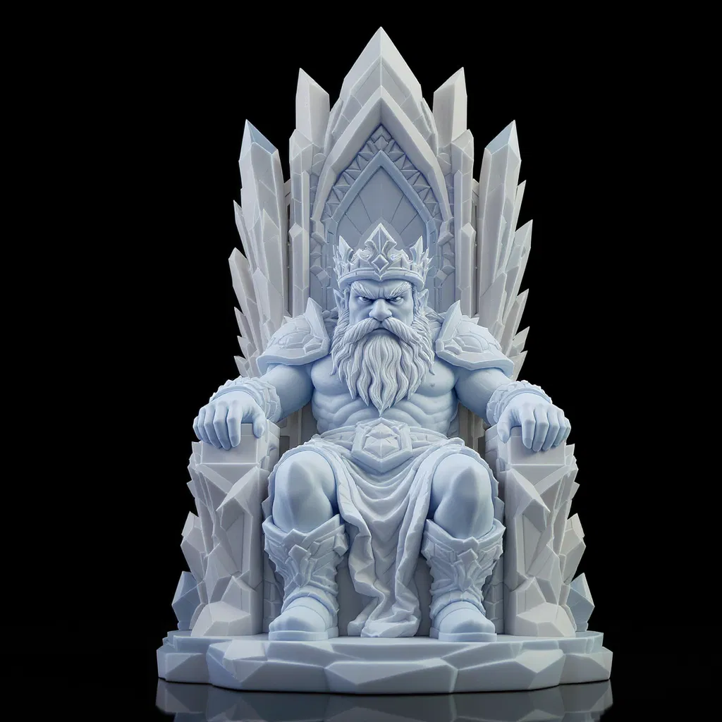 Chào mừng các bạn đến với mô hình Vua Lùn Ngự Trị Trên Ngai Vàng Pha Lê! Mô hình này là một vị vua lùn ngồi uy nghi trên ngai vàng pha lê lấp lánh, vương miện hòa vào các khối pha lê sắc sảo phía trên. Thiết kế chi tiết, mạnh mẽ, tối ưu cho in 3D. Đã thử nghiệm trên Orca Slicer. Cứ việc scale lên theo ý muốn!