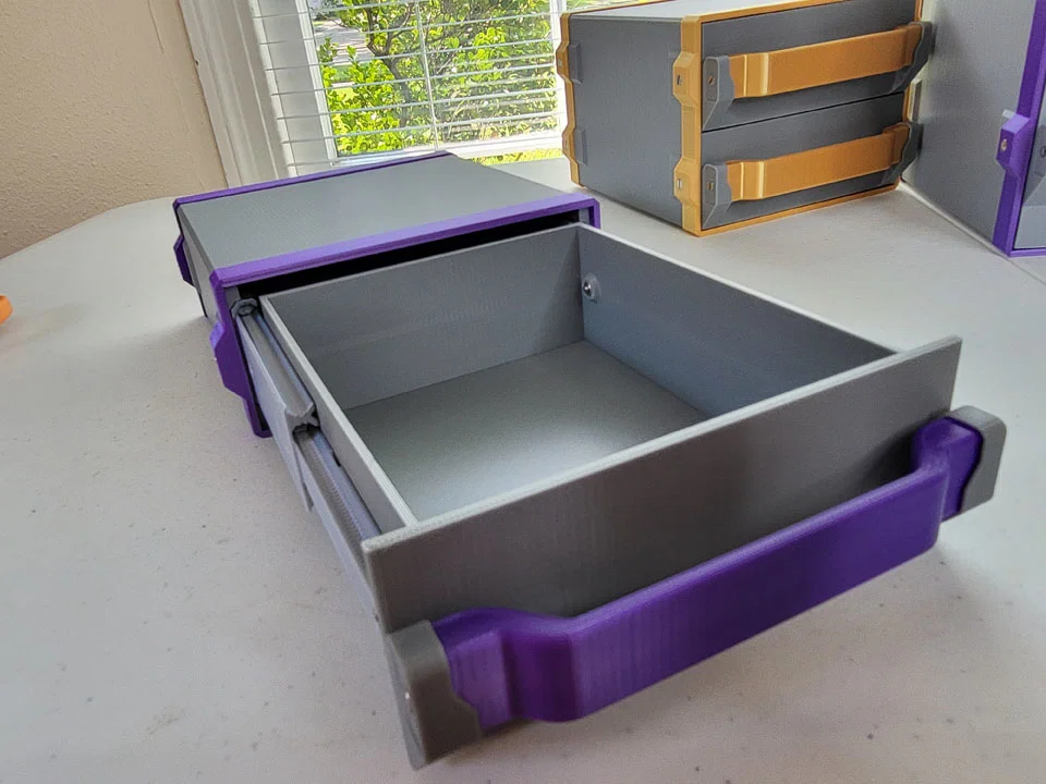 CÁI NÀY RẤT CÓ THỂ SẼ QUÁ KHÓ CHO ĐA SỐ MỌI NGƯỜI LẮP RÁP! Không phải chê kỹ năng lắp ráp của ai đâu, chỉ là... nó hơi nhiều. Trước khi quyết định in một ngăn kéo (hoặc một tủ có nhiều ngăn kéo), tôi khuyên bạn nên thử in và lắp ráp một thanh ray trượt đơn lẻ để xem bạn có muốn đầu tư thêm sợi nhựa và tham gia vào quy trình lắp ráp còn lại không.