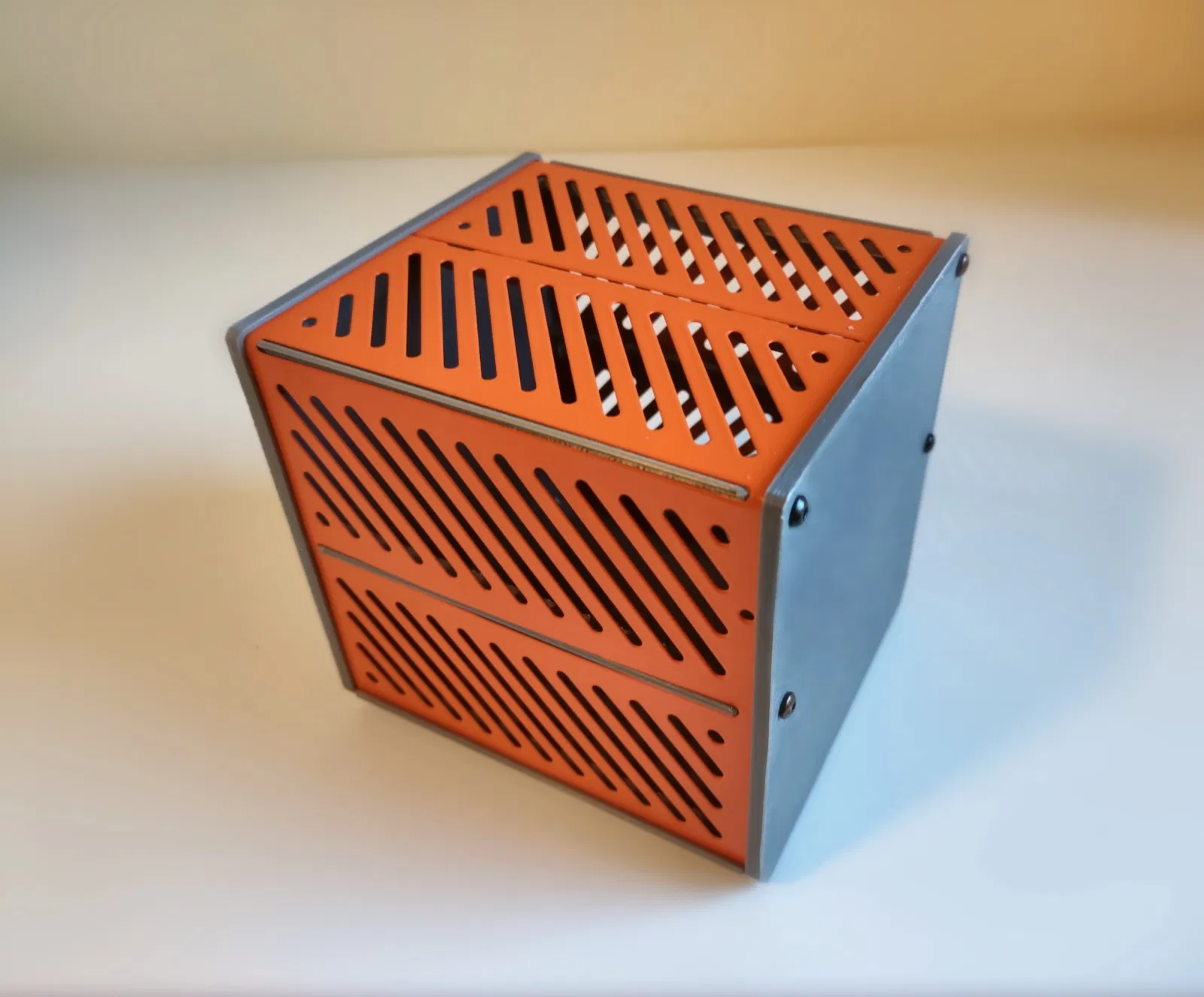 Tôi thấy dự án vỏ máy của Julius Curt dựa trên đèn Ikea Vårsyren và rất thích ý tưởng đó, chỉ là lúc đó tôi cần một vỏ máy lớn hơn với khả năng làm mát tốt cho dự án máy hàn điểm của mình. Vì vậy, tôi quyết định sử dụng cả hai tấm kim loại để tạo thành một hộp duy nhất, giữ nguyên thiết kế ban đầu, nhưng đạt được thể tích lớn hơn gấp khoảng 4 lần (kích thước bên ngoài là 122mm x 110mm x 117mm). Việc lắp ráp khá đơn giản, sau khi tất cả các ốc vít và các bộ phận kim loại được đặt vào vị trí, bạn có thể tháo đáy ra một cách an toàn - cấu trúc sẽ không bị sụp đổ. Tôi đã bao gồm tệp .step để tùy chỉnh, vì mỗi dự án cần các lỗ mở khác nhau cho màn hình, nút bấm và dây điện, vì vậy bạn có thể chỉnh sửa nó theo ý muốn.