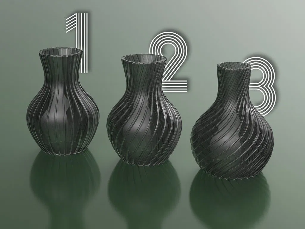 Thêm một bộ sưu tập ba chậu hoa với các đường sọc và xoắn trang trí. Các mẫu đều dễ in, có đáy phẳng và không có góc nghiêng quá lớn. Ủng hộ mình qua link AliExpress để nhận thêm nhiều mẫu mới nhé!