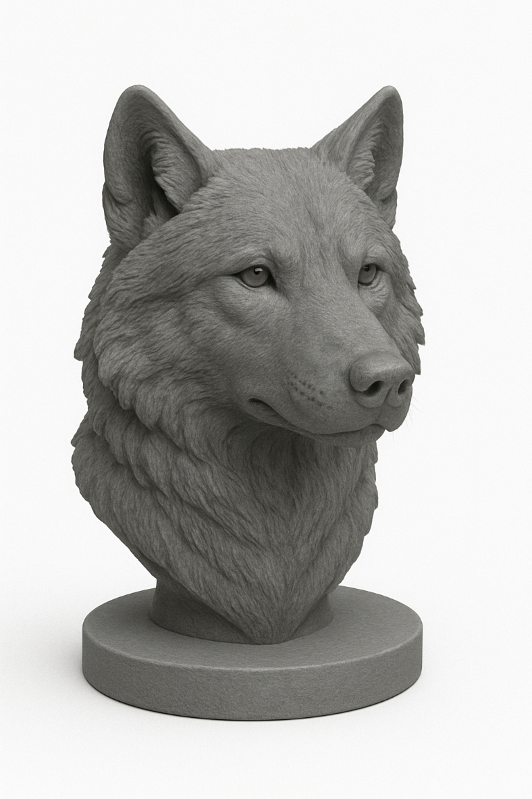 Mô hình tượng bán thân hình con sói, một tác phẩm điêu khắc chi tiết thể hiện uy nghiêm của loài sói. Hoàn hảo cho những người yêu thích động vật và các dự án in 3D.