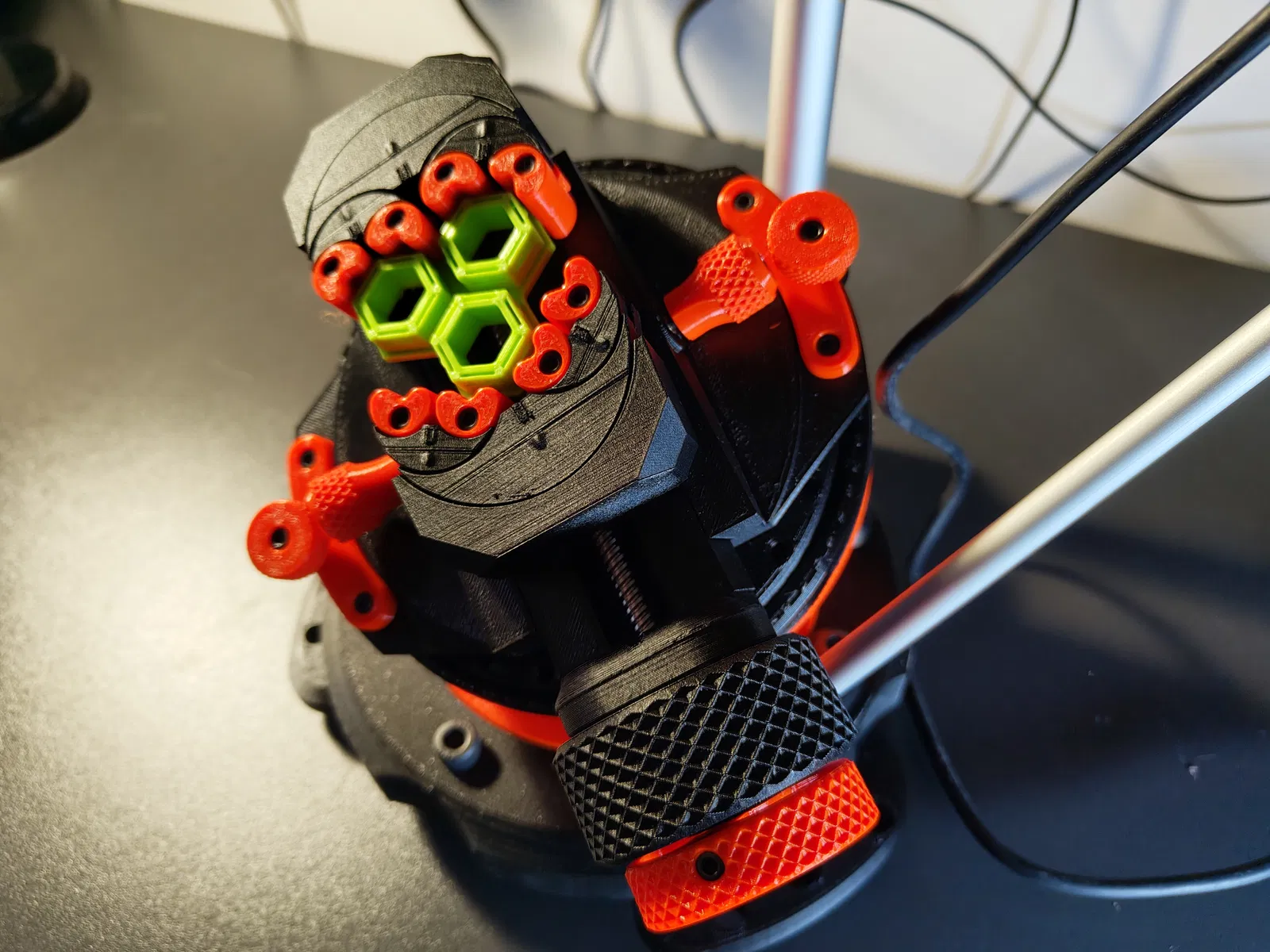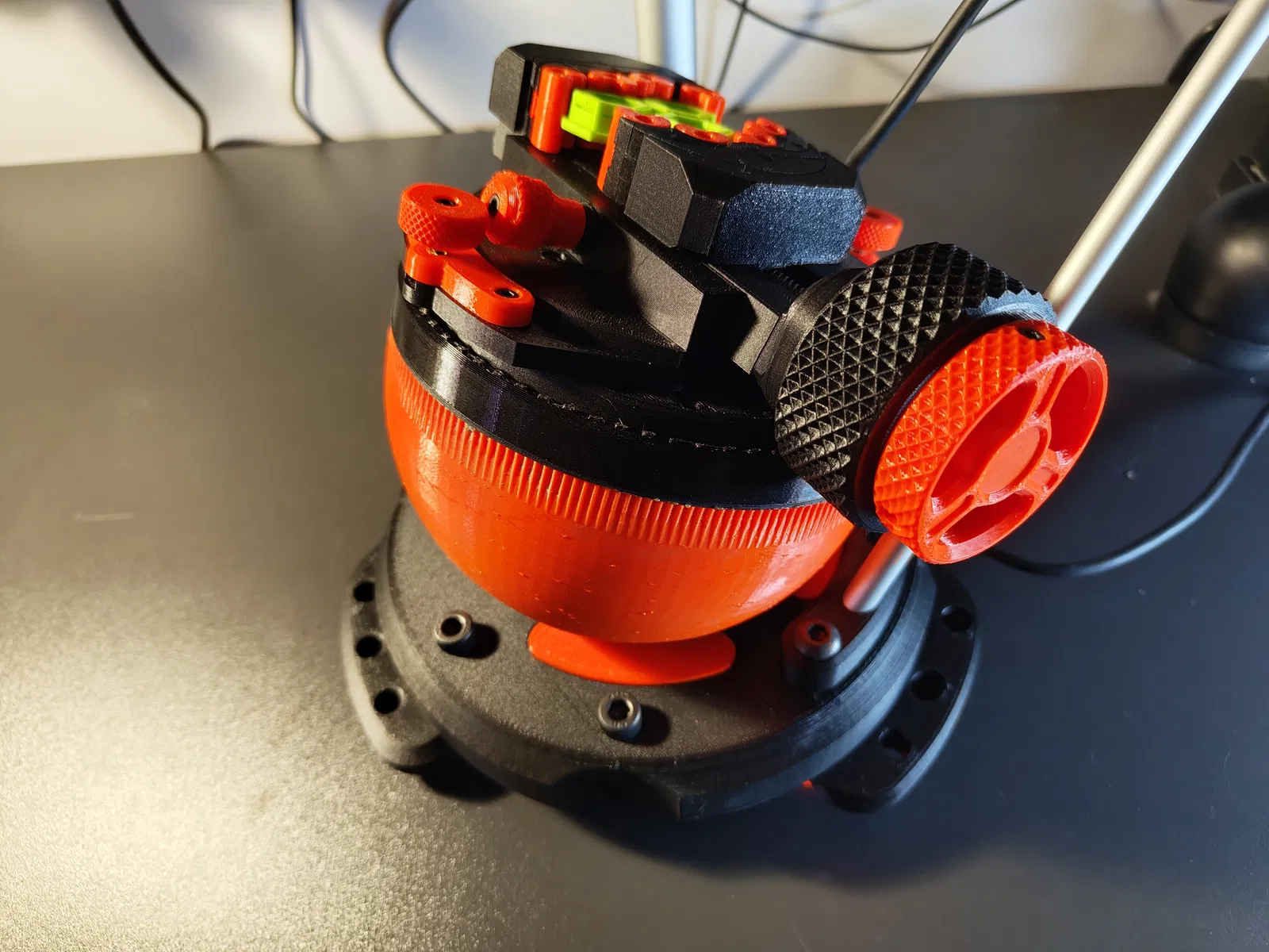 Tui sốt ruột đợi cái lazy suzan trên Amazon quá nên tự thiết kế một cái xài được luôn. Tiện tay tui làm lại cái bình fractal cho dễ in hơn (dựa trên thiết kế của Teaching Tech). Rồi bắt đầu chỉnh sửa vài chỗ cho hợp với linh kiện tui hay xài (bu lông M3, M5 DIN912 với heat insert) và kết quả là có một bản remix hoàn chỉnh.