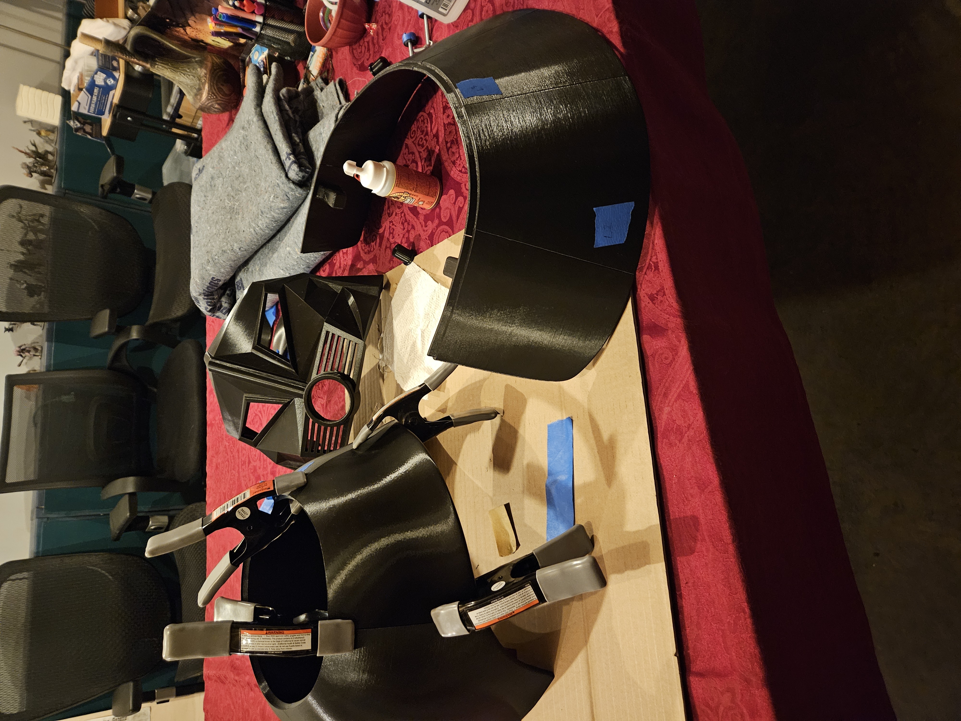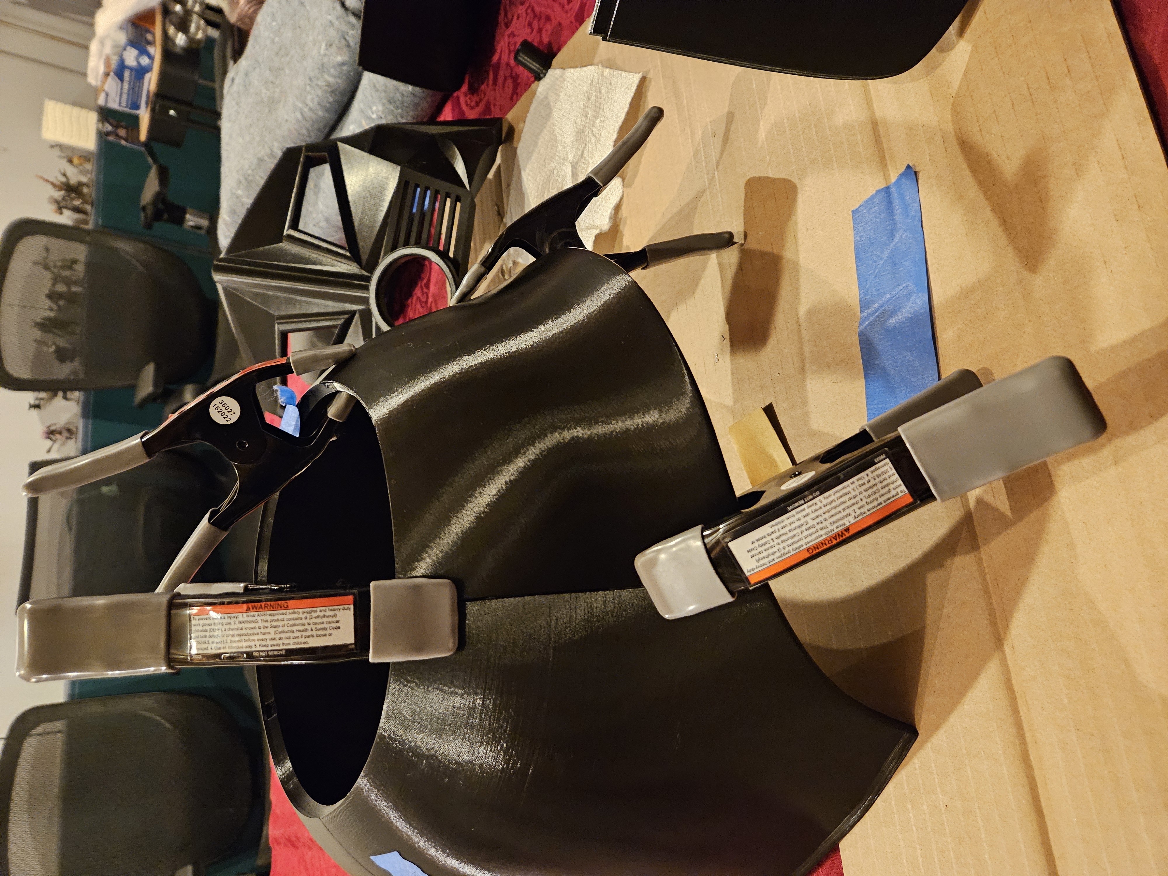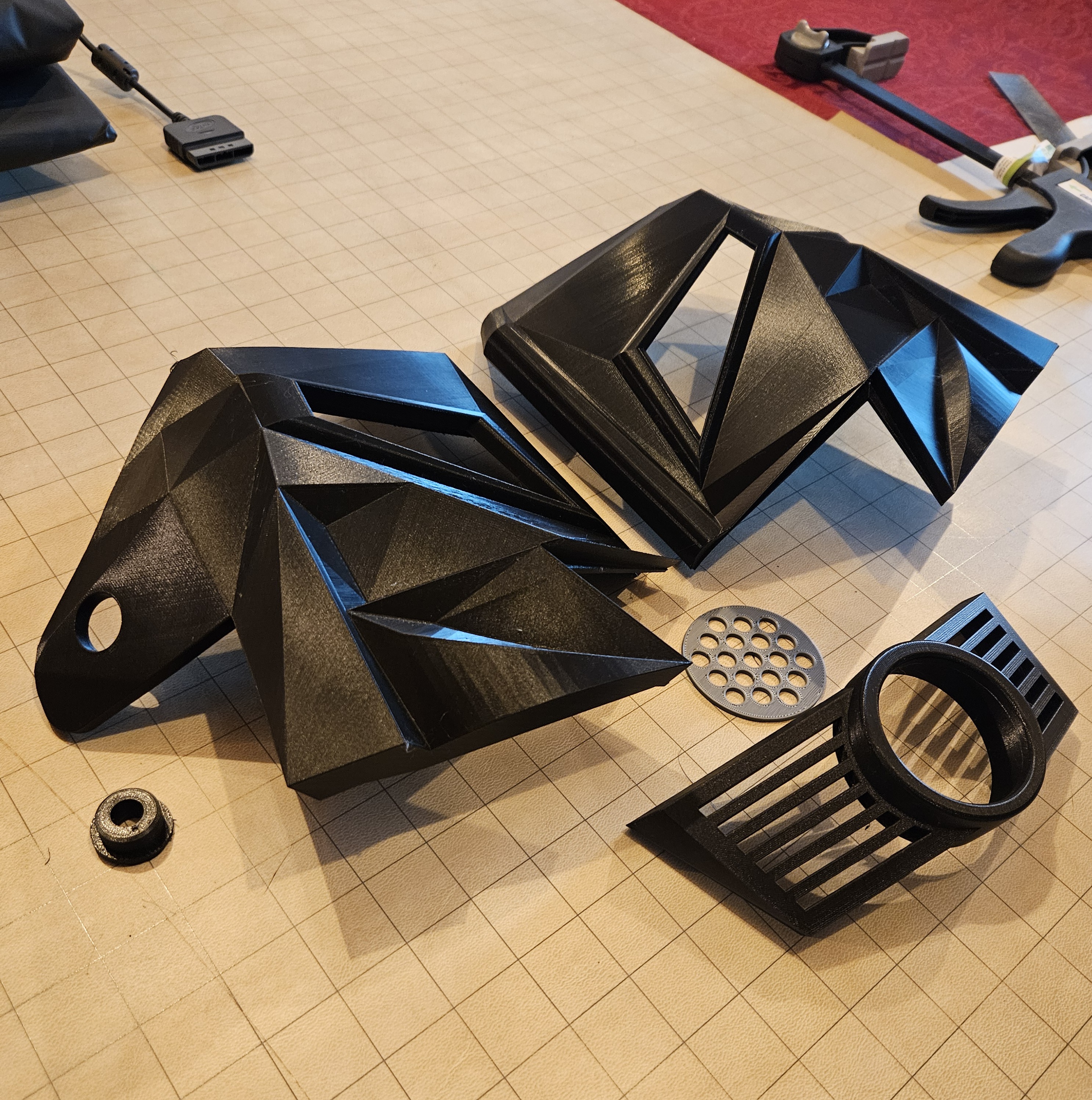 MoeSizzlac có hình ảnh và chi tiết chi tiết trên trang của anh ấy. Chúng đi qua các bước anh ấy đã làm để sử dụng tệp pepakura cho mũ bảo hiểm cũng như cách anh ấy giải quyết việc gắn dây của mình. https://www.moesizzlac.com/projects-DarkHelmet.php Cách tiếp cận này có thể dễ hơn/tốt hơn/nhanh hơn là in mũ bảo hiểm.