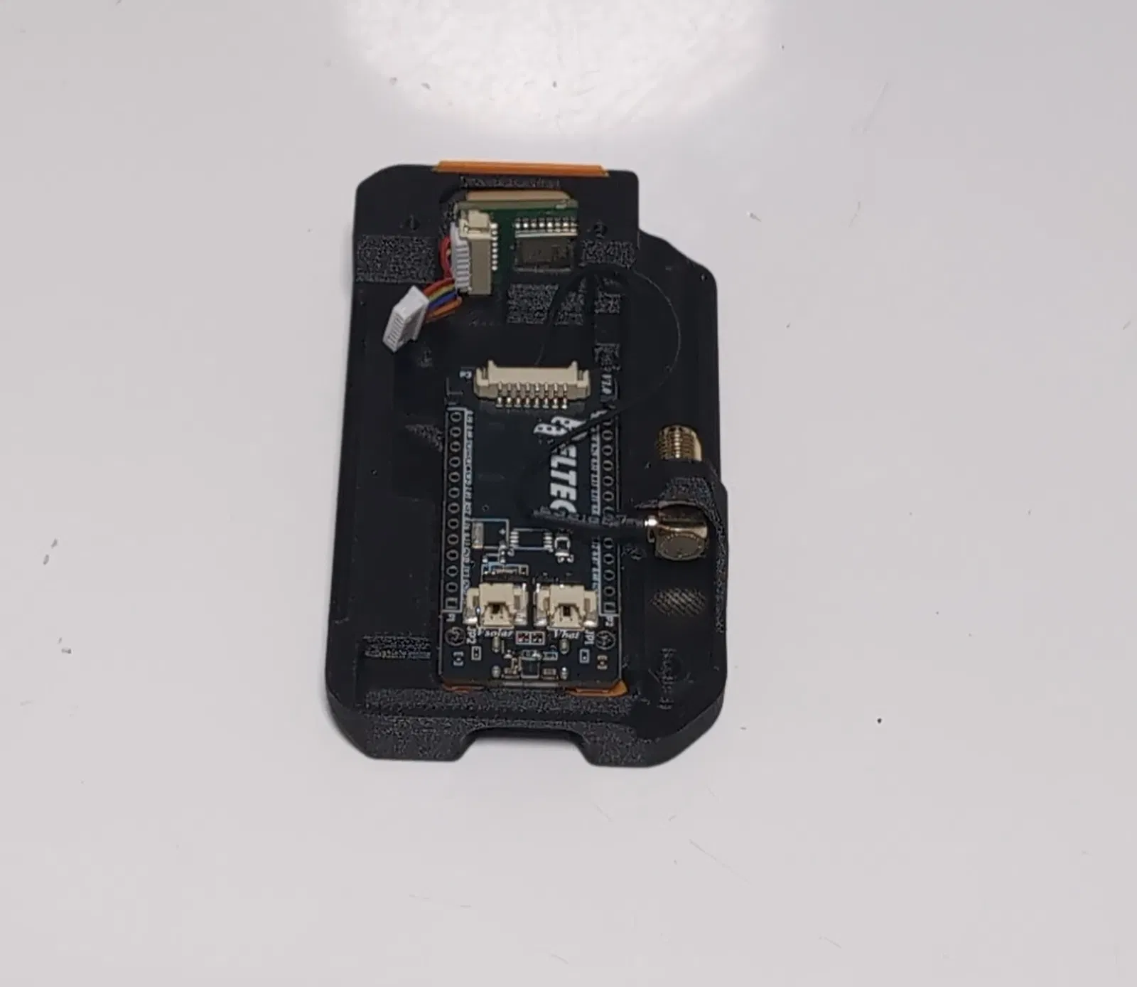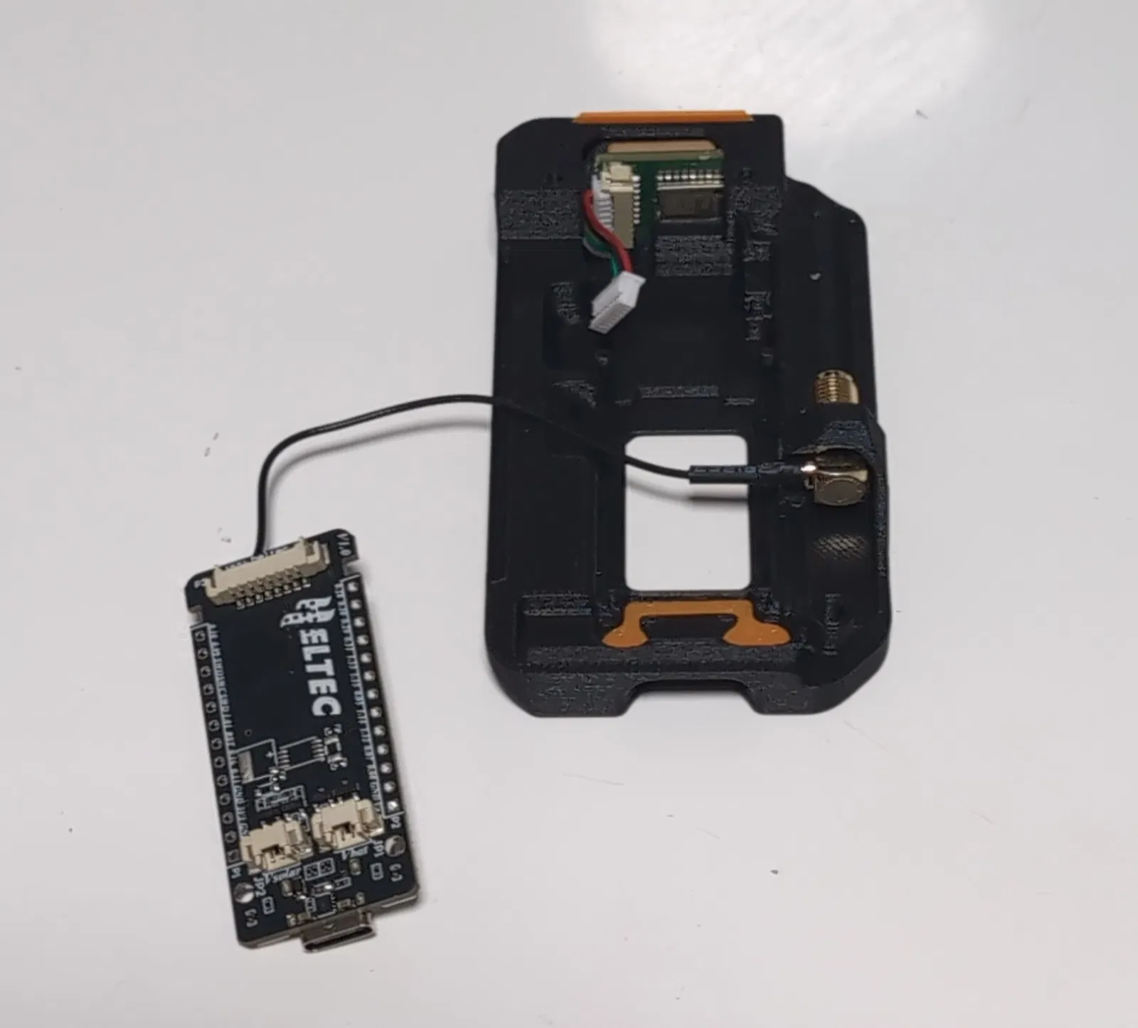 You có thể dùng đầu nối SMA vuông góc loại có lò xo của Heltec, hoặc bất kỳ loại SMA thẳng nào cũng được. Bộ thu GPS đã được nâng lên phía trên case, giúp bạn bắt sóng tốt hơn.
