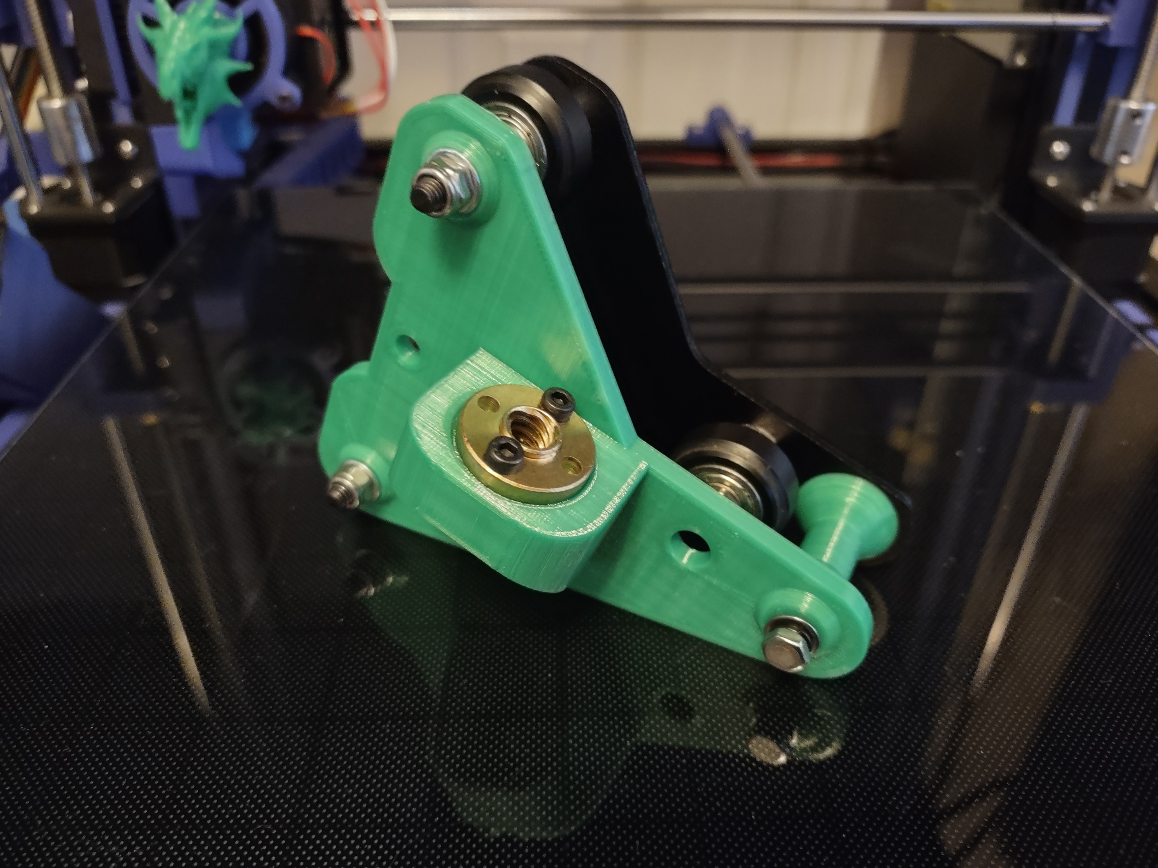 Cái đai ốc đồng tôi dùng cho trục Z thứ hai là loại đai ốc tròn Anet 4 lỗ, đúng là cái loại ông Egco định dùng cho thiết kế gốc của ổng, đơn giản vì tôi có sẵn loại đó thôi. Mấy cái đai ốc kiểu Creality có hai mặt phẳng thì không gắn vừa mẫu này đâu. Không tháo máy xài đai ốc kiểu Creality ra thì tôi không đo đạc kỹ được. Nếu anh em nào muốn xài loại đai ốc đồng kia với thiết kế này, cứ bình luận xuống dưới, tôi sẽ xem lại mẫu này và thêm một phiên bản khác cho loại đai ốc đó.