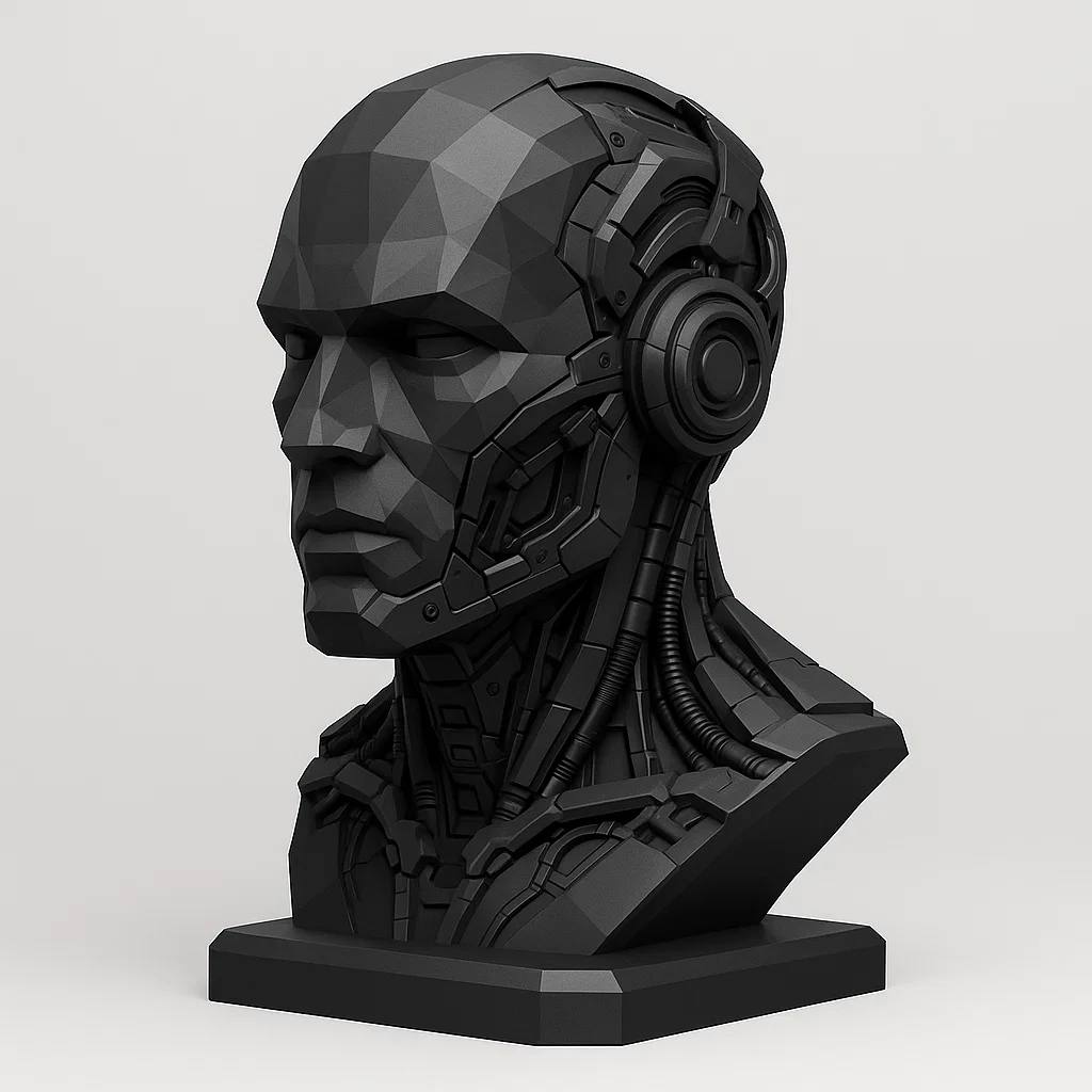 Chân đế tai nghe lấy cảm hứng từ cyberpunk với thiết kế tượng bán thân cơ khí tương lai, hoàn hảo để bàn làm việc hoặc trưng bày. Kiểu dáng công nghệ độc đáo, dễ in 3D và sơn.