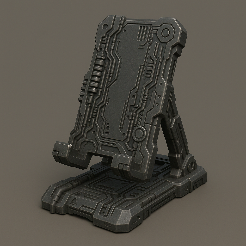 Chân đế điện thoại theo phong cách cyberpunk tương lai với các chi tiết táo bạo, hoàn hảo để in 3D và trang trí bàn làm việc hiện đại. Mang hơi hướng tương lai và phong cách độc đáo cho không gian của bạn.