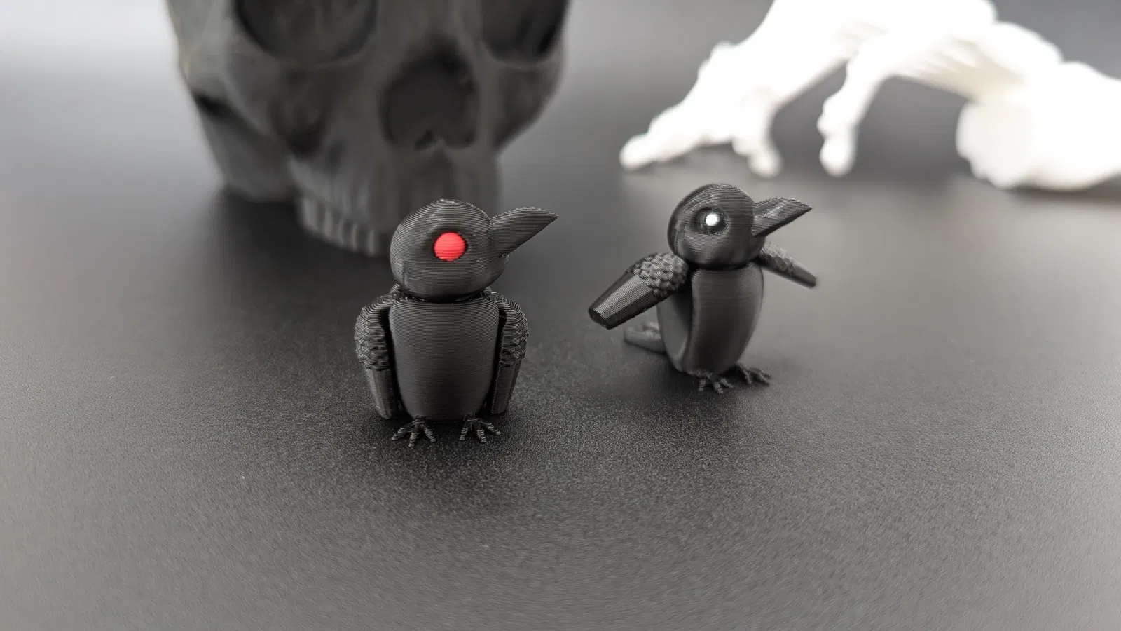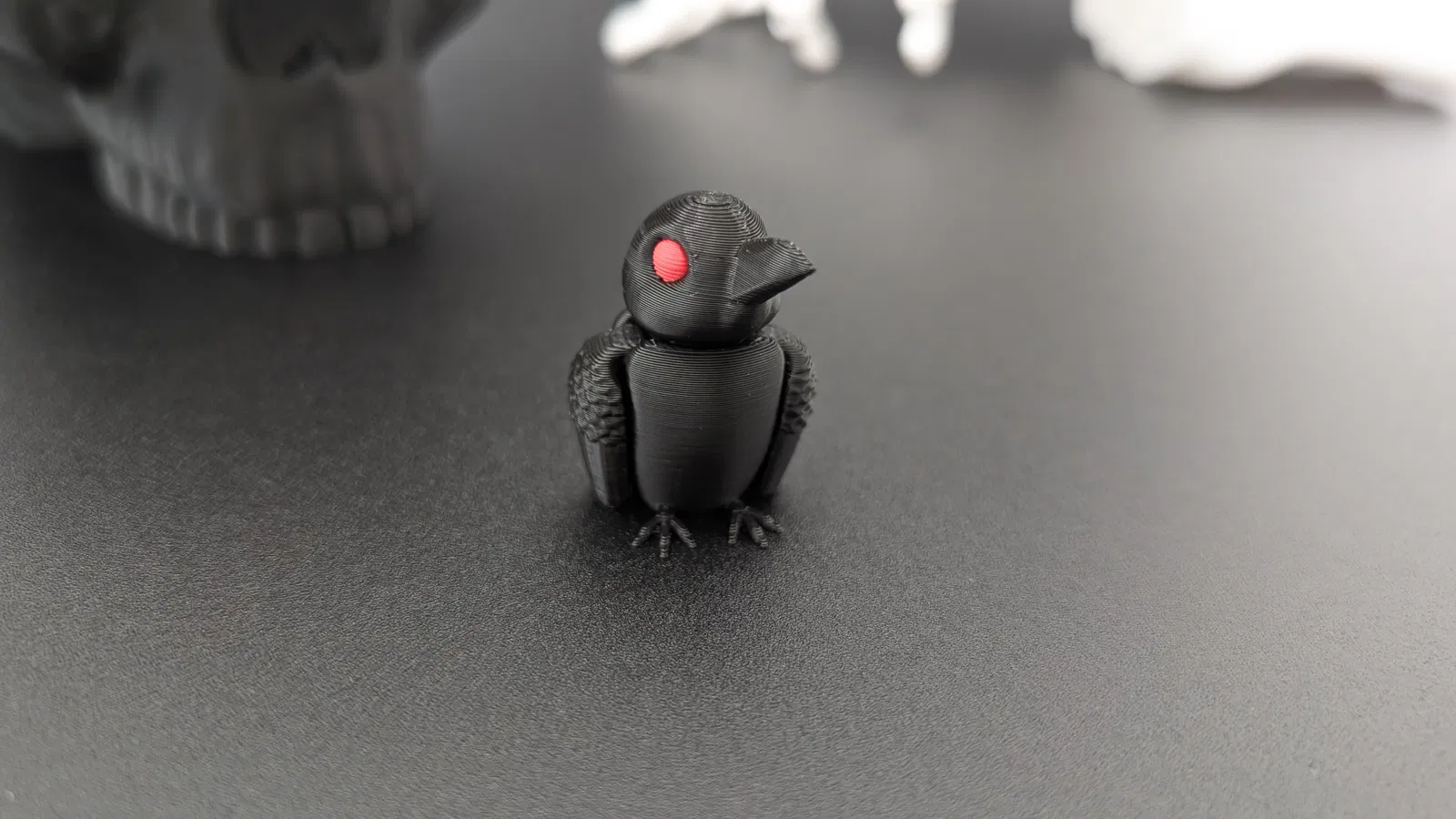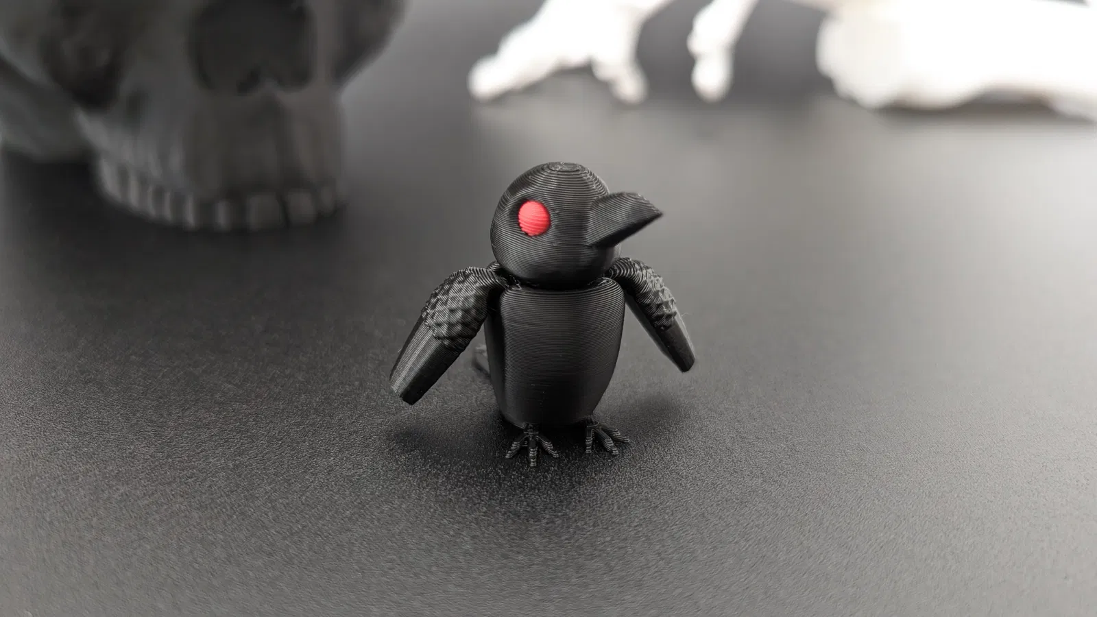 💡 Mẹo In: In ở độ cao lớp 0.2 mm để có khớp nối rõ nét và lông vũ mượt mà. Trông tuyệt vời với màu đen cổ điển, nhưng cũng tỏa sáng với màu kim loại, hoặc thêm điểm nhấn mắt đỏ cho không khí Halloween. Dùng sợi phát quang trong tối (glow-in-the-dark) sẽ làm nó thêm ma quái vào ban đêm!