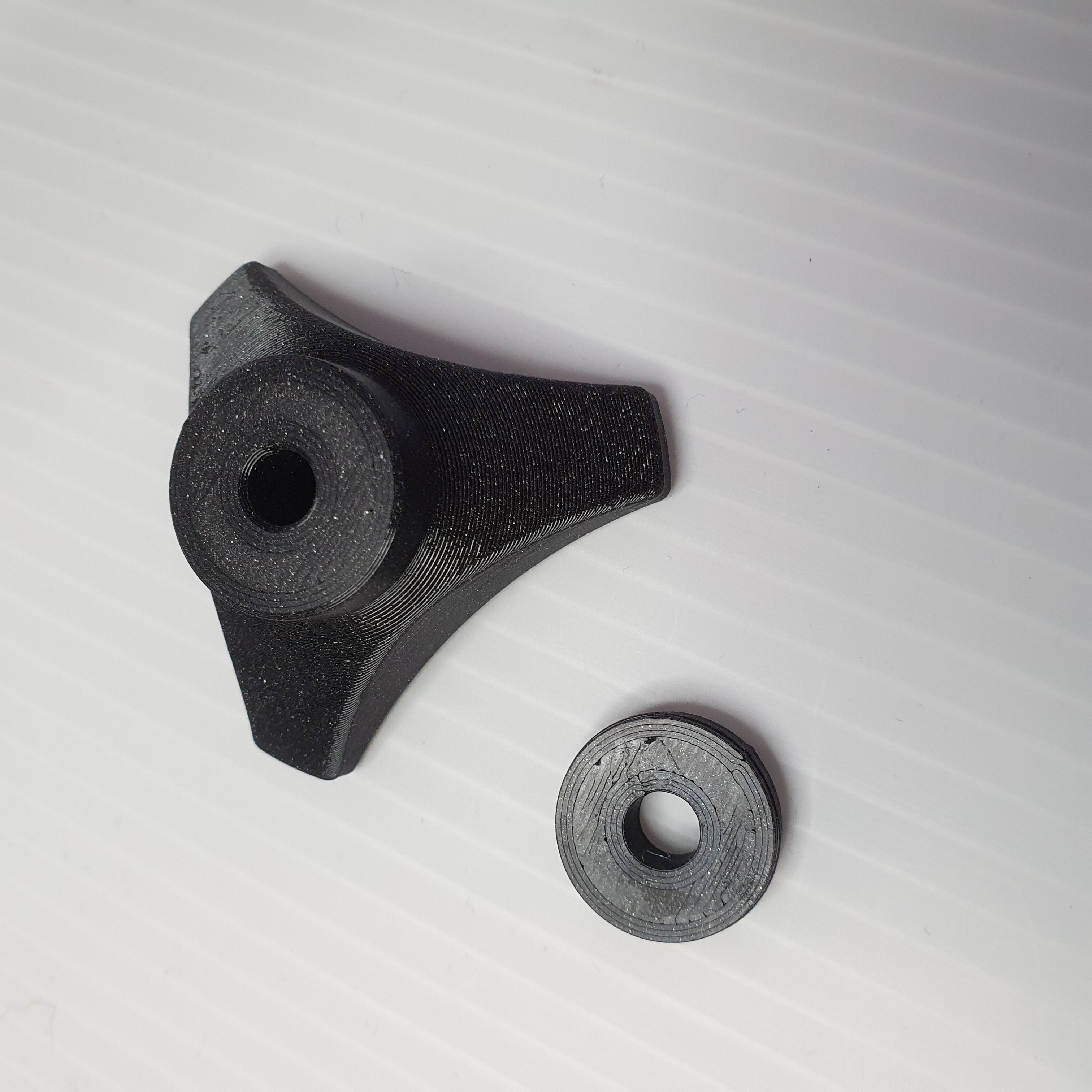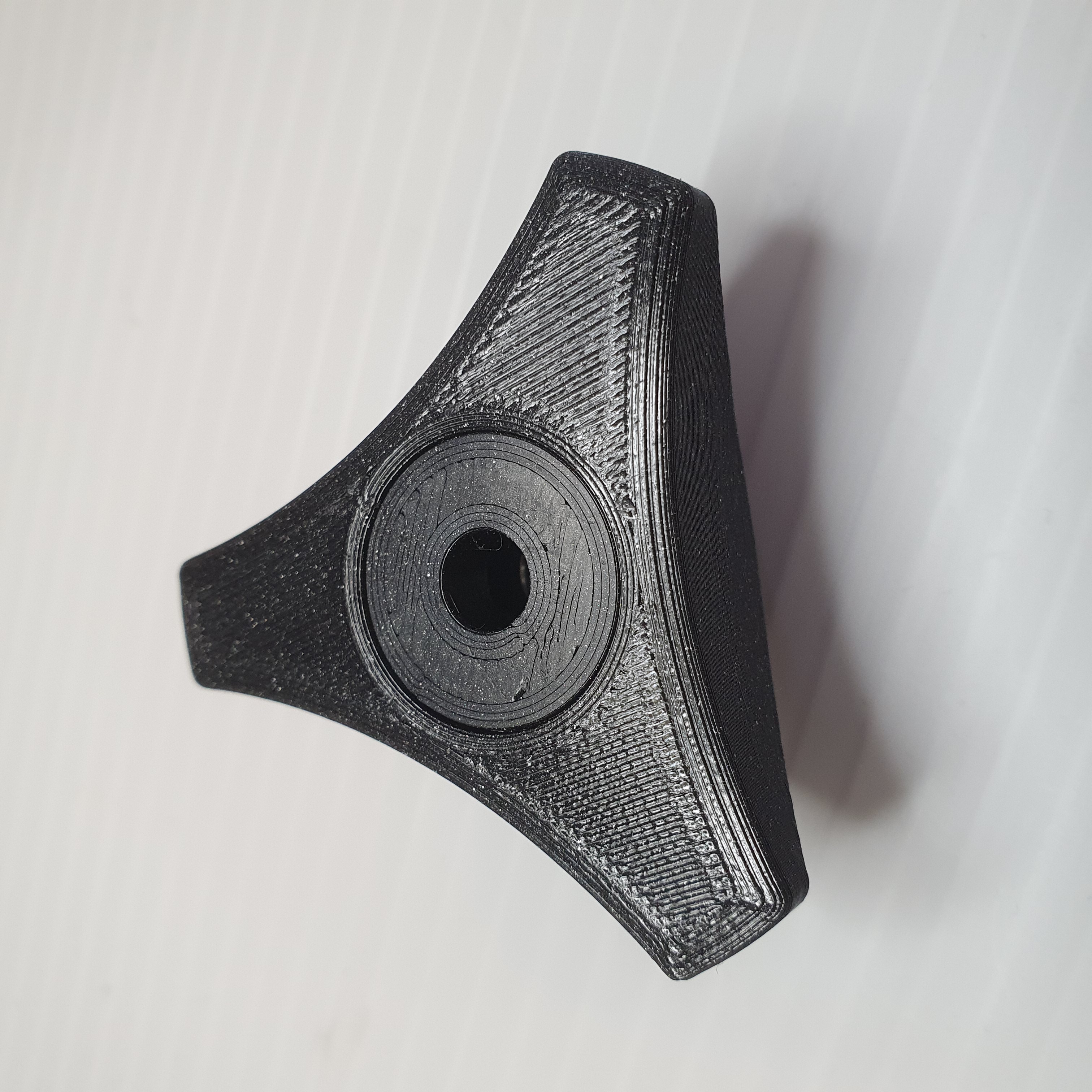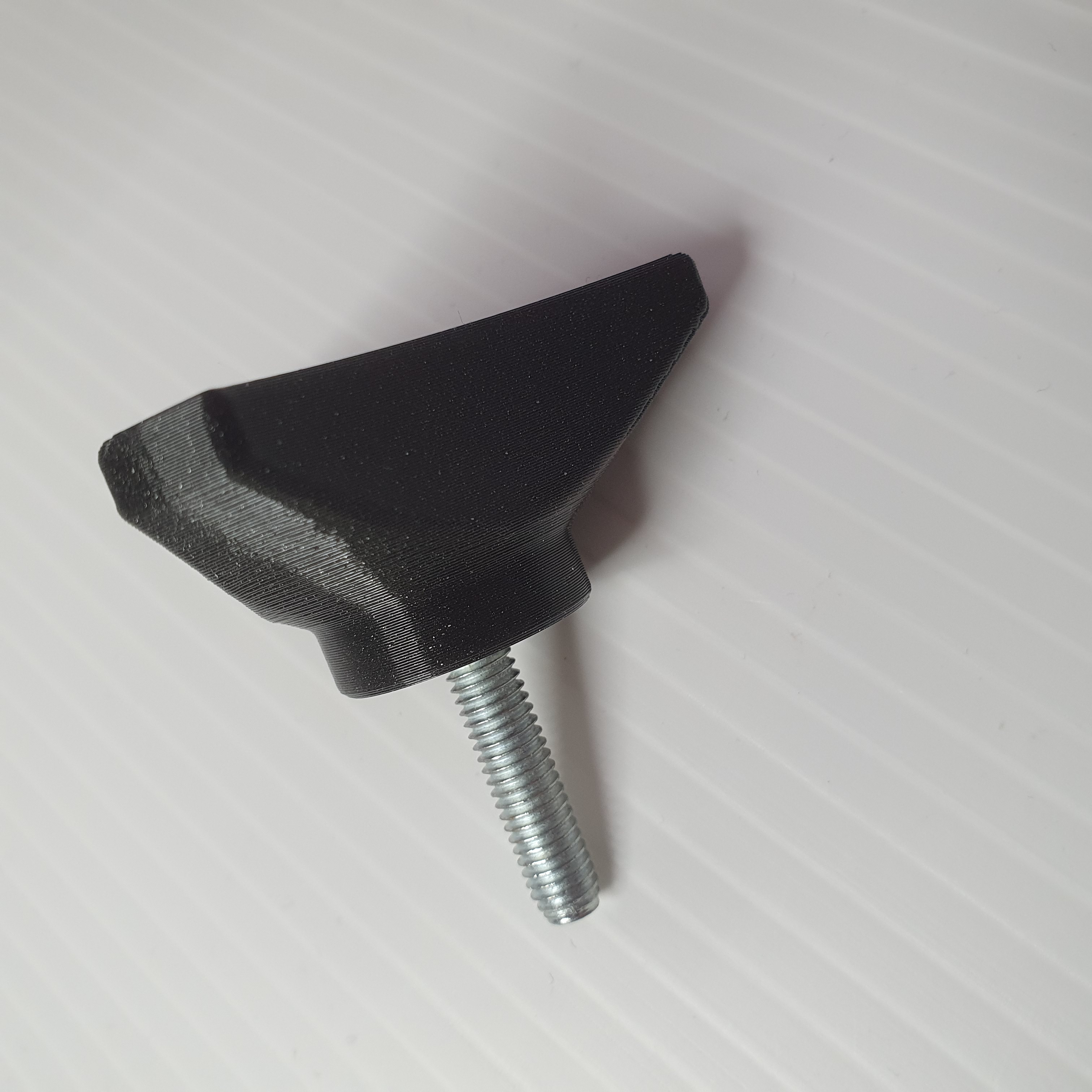 Thiết kế này ban đầu được làm cho máy cắt cỏ của tui, chỗ đó có mấy cái ốc siết nhanh xài không được ngon lắm. Tui muốn có một cái núm vặn chỉ có ba cánh để dễ dàng siết chặt khi đeo găng tay. Tui có tải lên hai phiên bản nắp: một cái có lỗ xuyên qua và một cái không có (xem file .step). Cái đai ốc siết vô rất chặt. Nếu bạn không ép vô bằng tay được, cứ dùng một con ốc có long đền để kéo nó vào vị trí bên trong núm vặn.