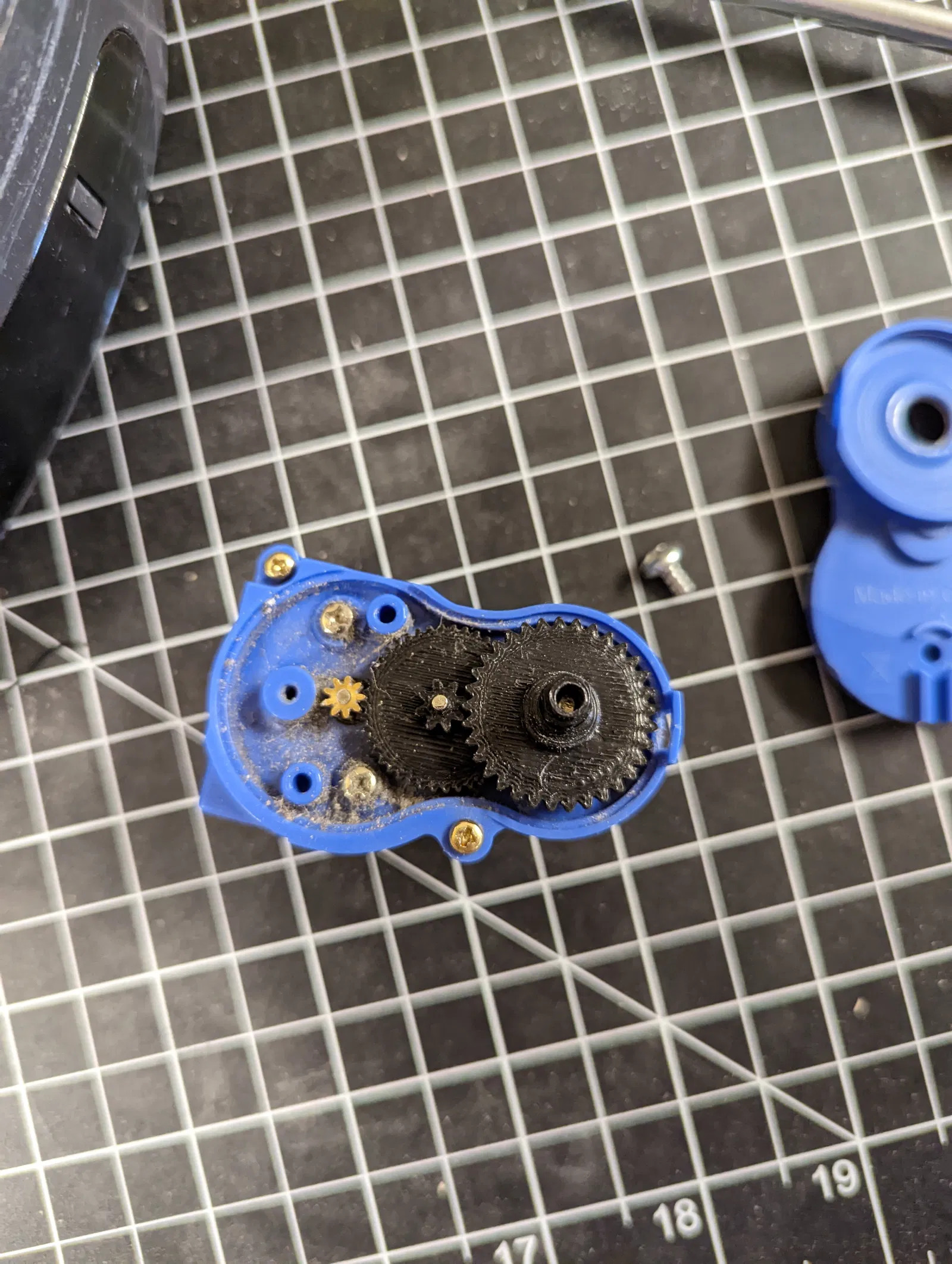 In bánh răng bằng nylon hoặc vật liệu có khả năng chống mài mòn cao hơn PLA nếu có thể, nhưng PLA+ dường như cũng dùng ổn trong một thời gian.