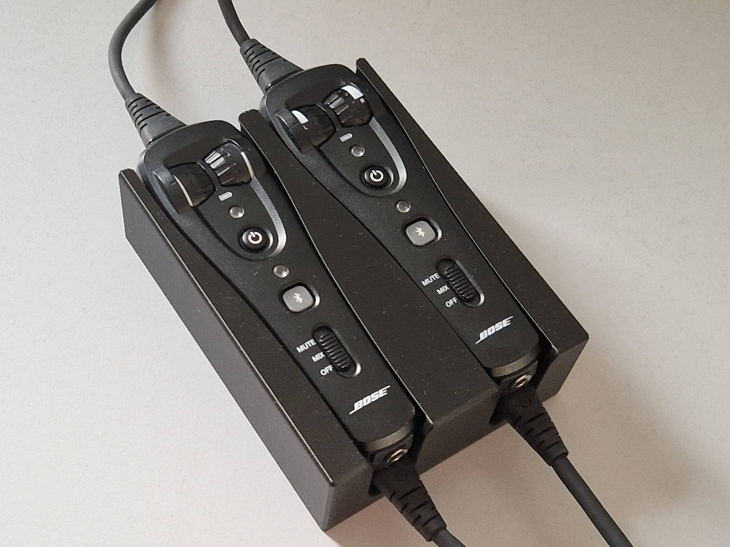 Các loại đế giữ bộ điều khiển tai nghe hàng không Bose A20, có sẵn phiên bản đơn, đôi, nghiêng và thon gọn. Dễ dàng lắp đặt và truy cập, giữ cho bộ điều khiển của bạn luôn gọn gàng. Nên in bằng PETG.