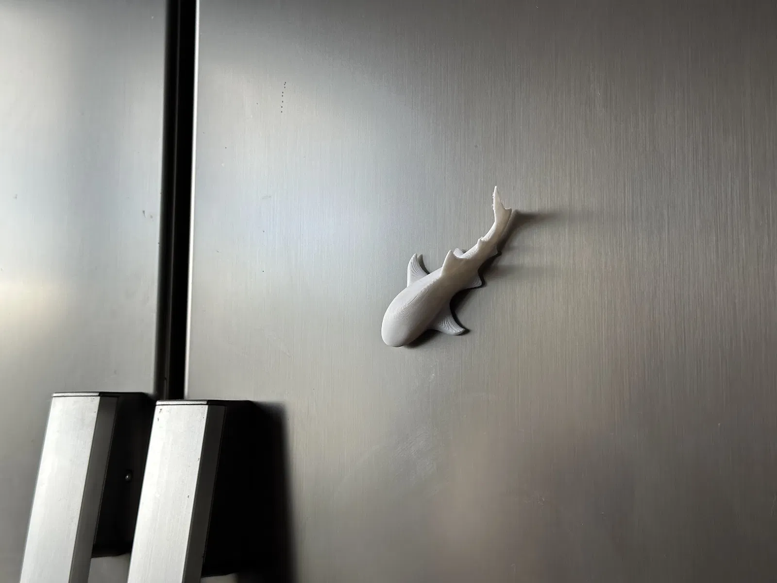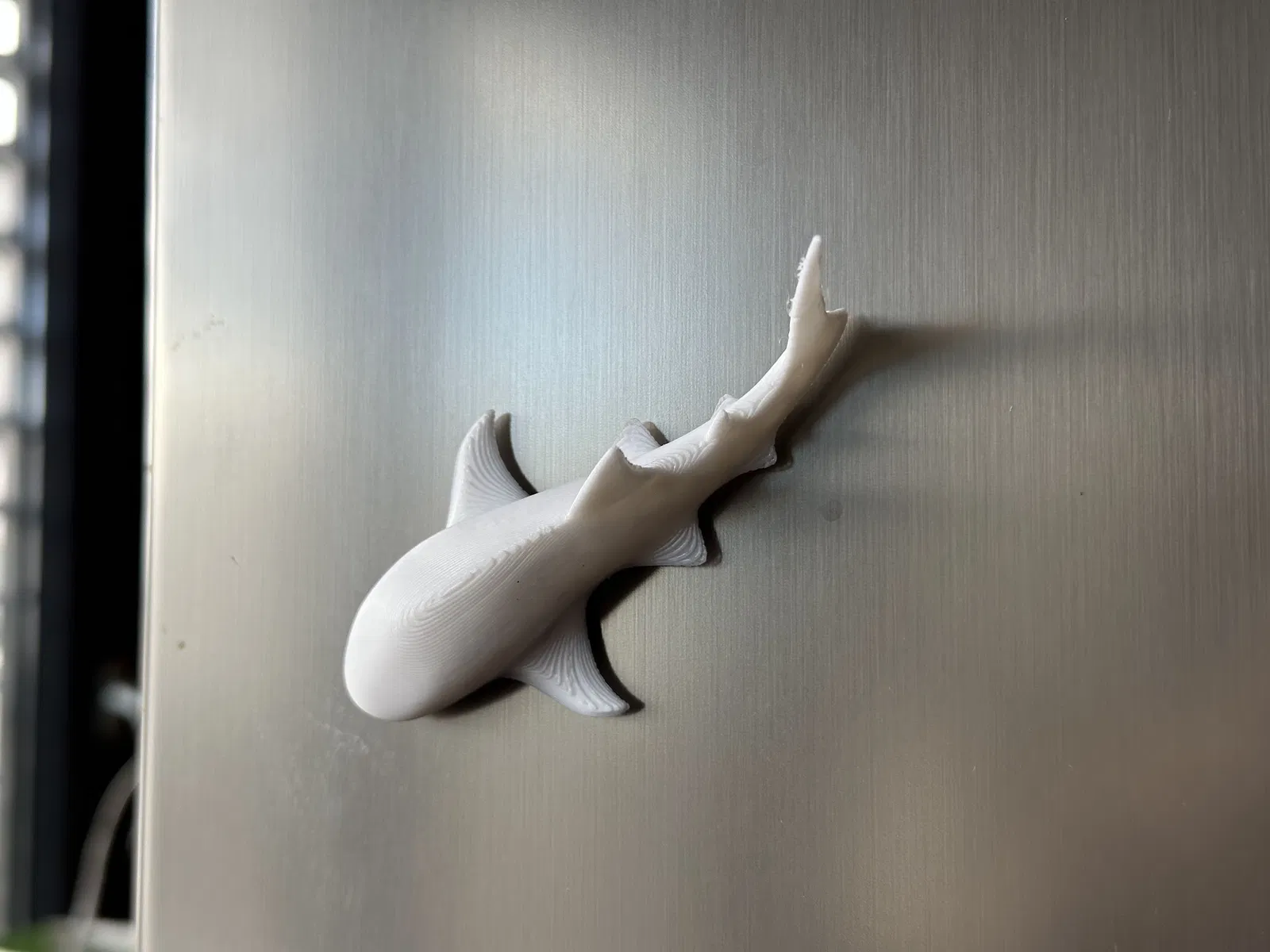 Mô hình cá mập voi đơn giản để làm nam châm tủ lạnh, có lỗ dưới bụng để gắn nam châm. Phiên bản 18x3mm vừa vặn nam châm 18x4mm. Mô hình hóa thủ công, không AI.