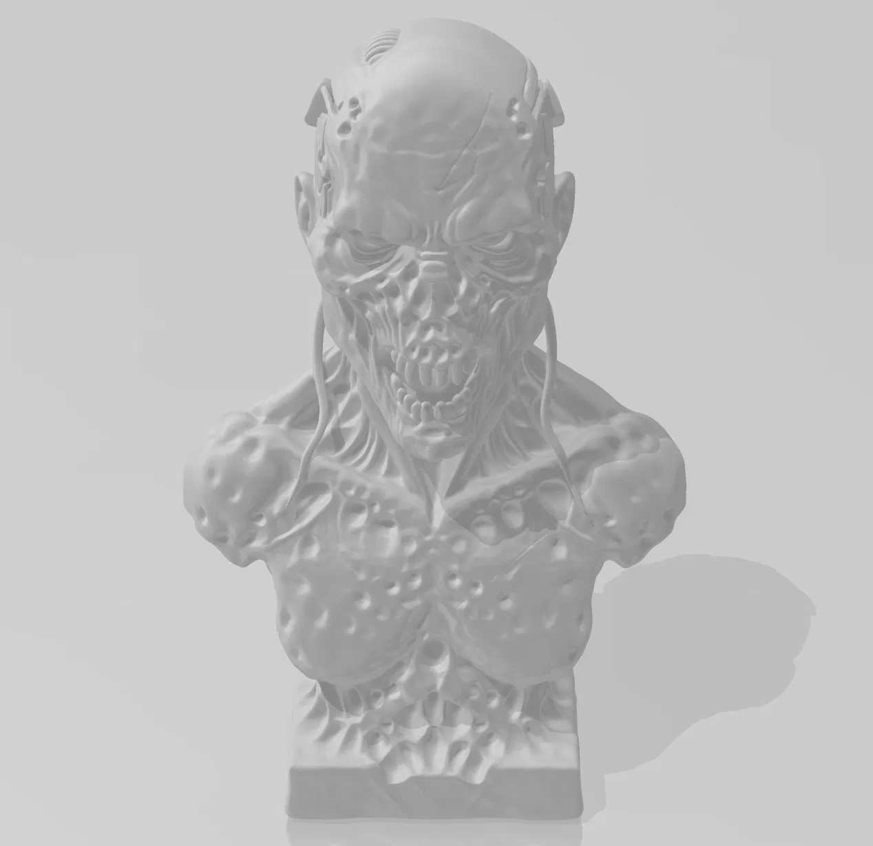 Tượng bán thân zombie-cyborg ghê rợn để in 3D. Chi tiết cao, decor kinh dị khoa học viễn tưởng, cực hợp cho Halloween và fan thể loại kinh dị. Thêm chút rùng rợn cho không gian của bạn!