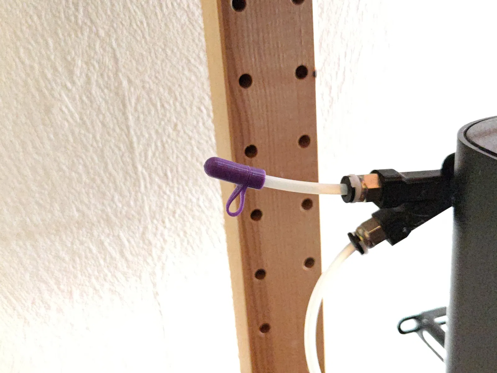 Nó được thiết kế để in bằng sợi filament dẻo — tui đã dùng (hơi ẩm) Overture 95A TPU. Tui gợi ý đẩy một đoạn ống PTFE vụn qua dây giữ và vào trong nắp, để loại bỏ bất kỳ sợi thừa nào trước khi gắn nó vào hệ thống của bạn.