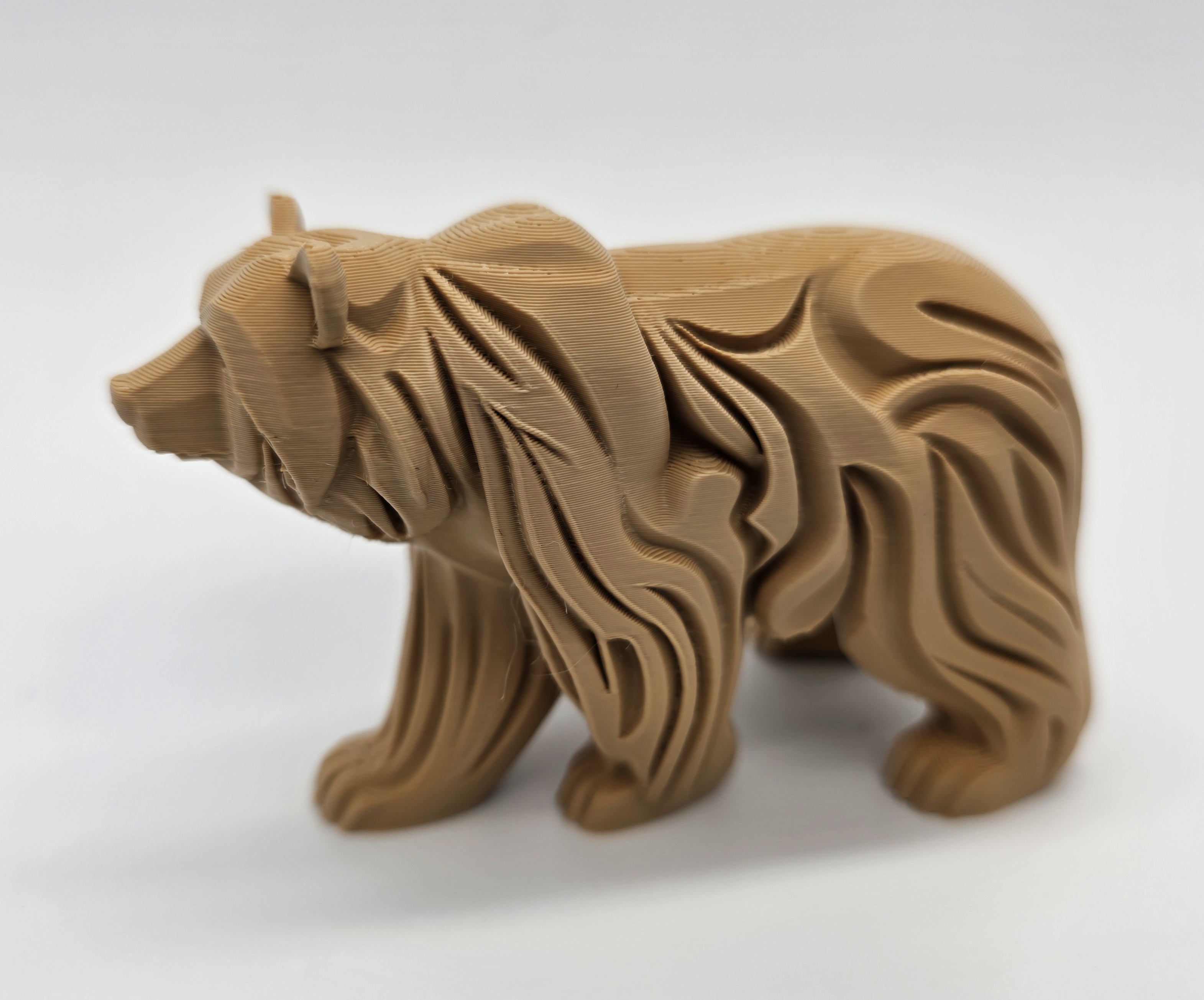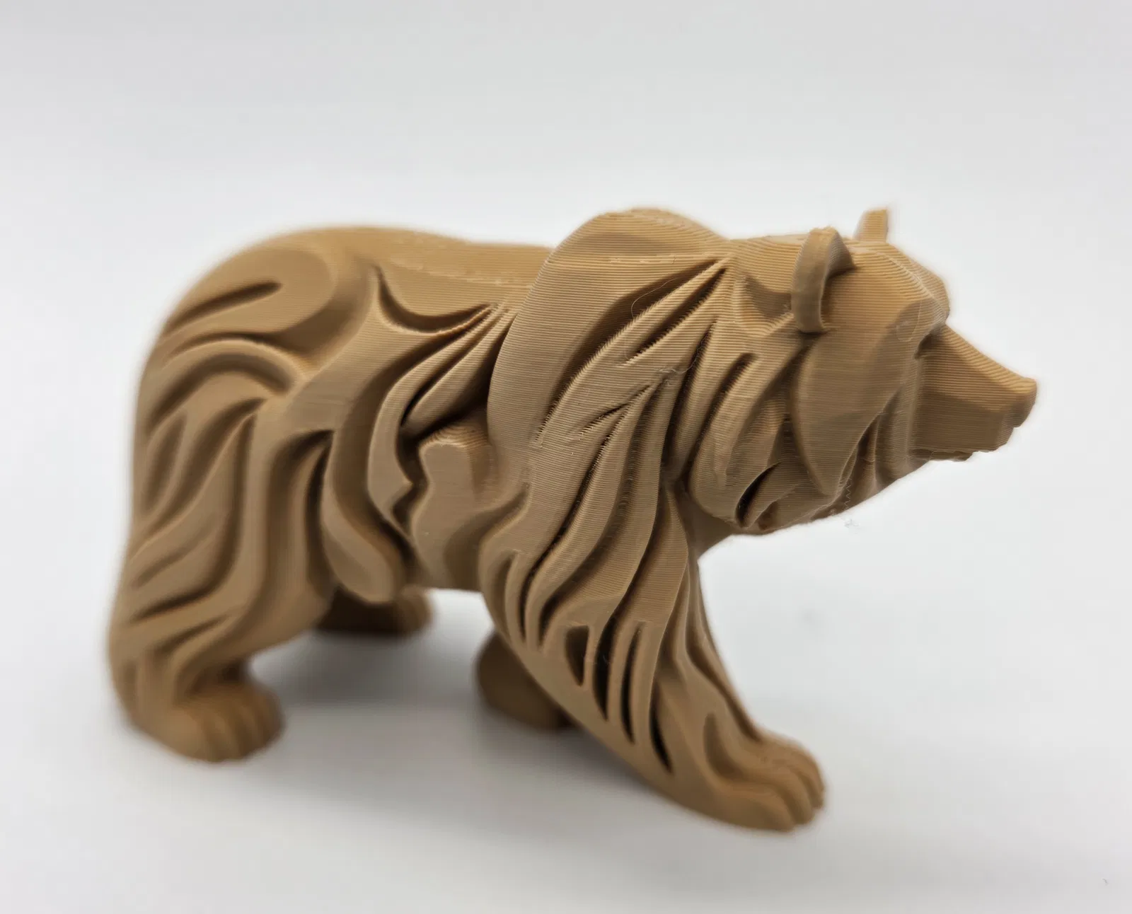 Một chú gấu đang đi bộ được chạm khắc sâu với phong cách uyển chuyển tuyệt vời, có thể co giãn theo mọi kích thước! Khám phá bộ sưu tập động vật đa dạng của tôi, được chế tác tinh xảo như đá cẩm thạch hay gỗ tự nhiên, mang vẻ đẹp hoang dã và nghệ thuật vào không gian của bạn.