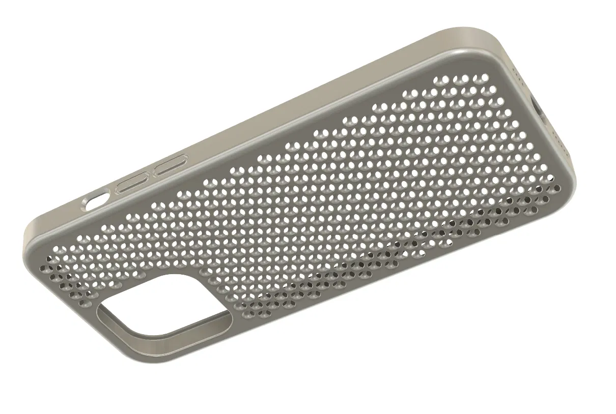 Chiếc ốp này được làm lại hoàn toàn từ một mẫu ốp kinh điển trên aliexpress, với thiết kế dạng lưới tản nhiệt của Mac Pro và cách bố trí camera mới. Các nút bấm và lỗ khoét cũng đã được tùy chỉnh lại.