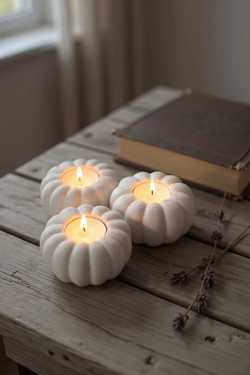 Mang không khí mùa thu vào nhà với chân nến LED hình bí ngô, thiết kế dành cho ba cây nến đường kính tối đa 40 mm. Kích thước 166 x 161 x 49 mm, in dễ dàng không cần hỗ trợ. Lý tưởng cho trang trí Halloween, Lễ Tạ ơn hoặc làm quà tặng.