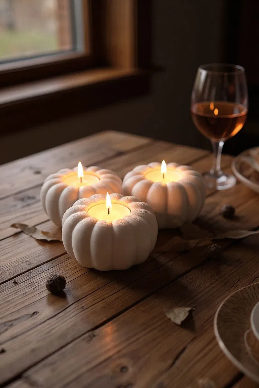 Chân nến LED hình bí ngô mùa thu cho 3 cây nến