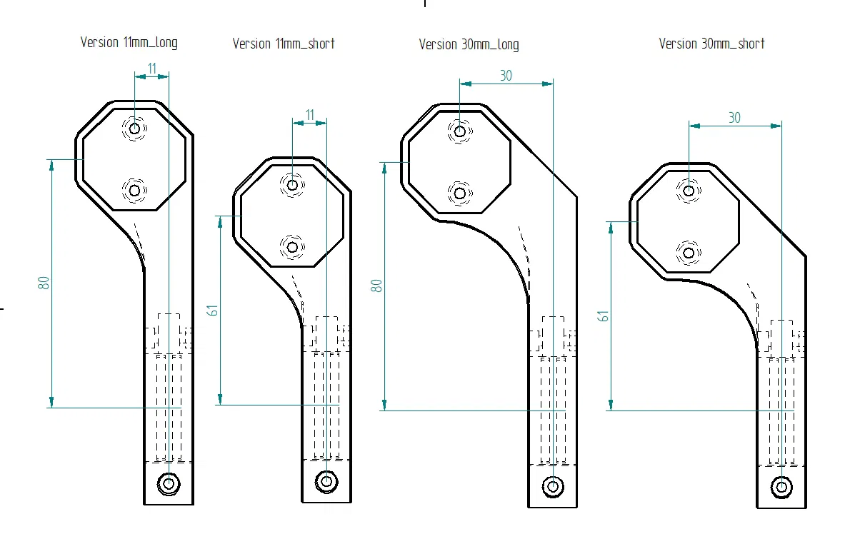 Thêm phiên bản dài hơn nữa 30 mm x 100 mm theo yêu cầu (Phiên bản 30mm_long nhưng 100mm thay vì 80mm). Dành cho đèn pha Magicshine MJ 900S loại ngắn, nếu không nó sẽ chiếu vào cáp Bowden với giá đỡ ghi đông ngắn hơn.