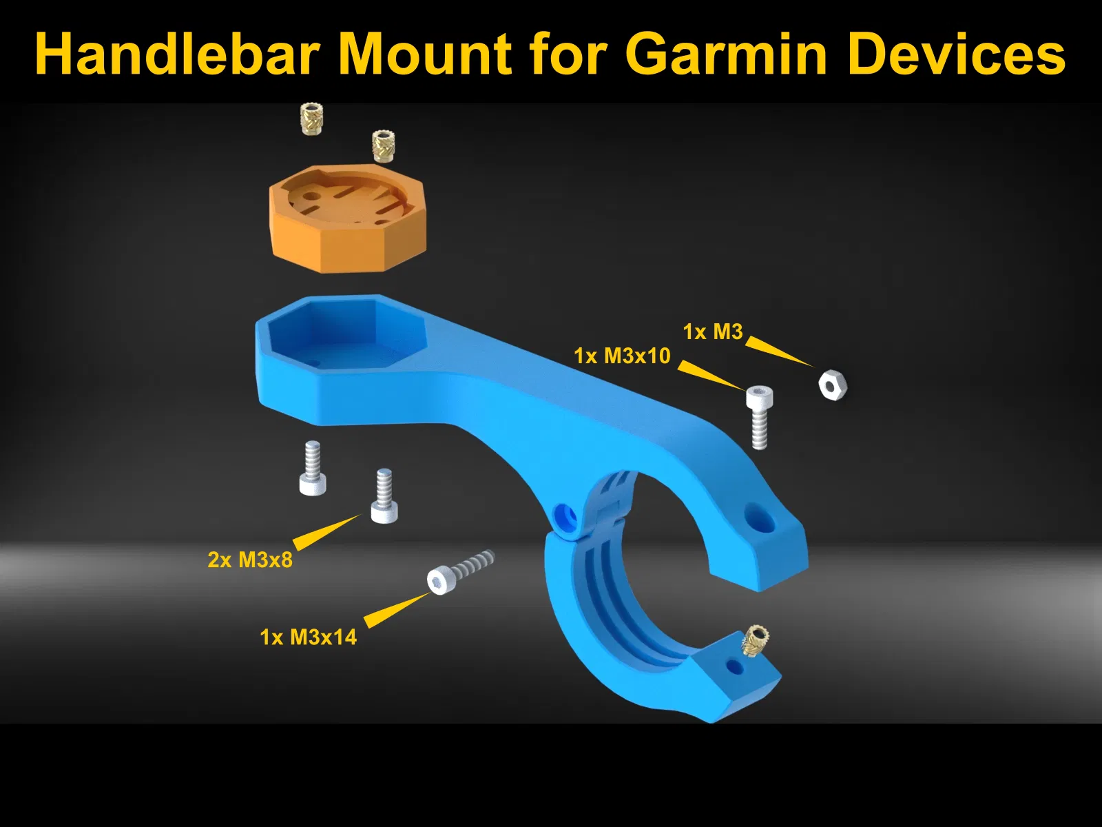 Các bộ phận lắp trực tiếp vào đường kính ghi đông 35mm. Đối với đường kính nhỏ hơn, bạn có thể tìm adapter trong thư mục “Optional Parts”. Adapter phẳng được thiết kế để in bằng vật liệu flex.