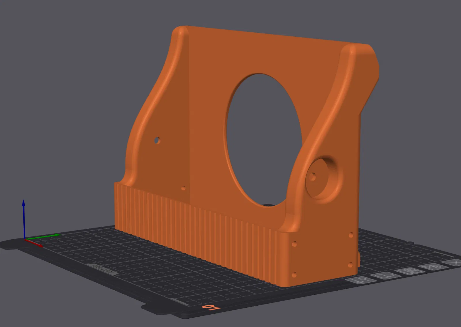 Cập nhật: Hai phiên bản chân đế mới với cấu trúc tổ ong và đầu vít ẩn. Phần thân chính phiên bản 1.1 có lõm vào để vừa đai ốc M3.