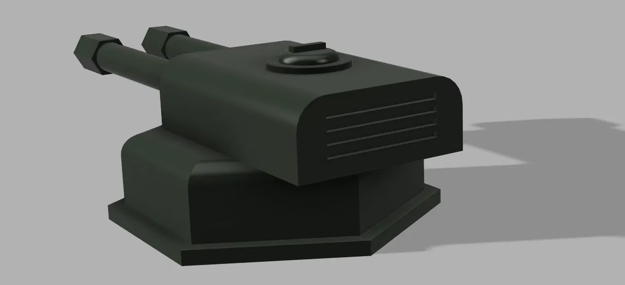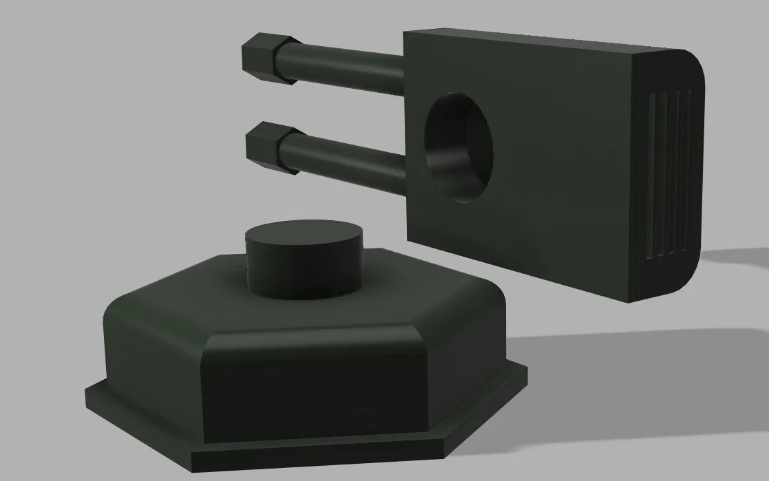 Chiếc "tháp pháo" vui nhộn này sẽ giúp robot hút bụi của bạn thêm phần độc đáo cho cuộc thi. Nó có thể xoay 360 độ và gồm 2 bộ phận dễ dàng in ra. Chỉ cần dán lên robot và để nó "chạy" khắp nhà thôi nào! (Lưu ý: chỉ để trang trí, không có chức năng bắn đâu nhé!)