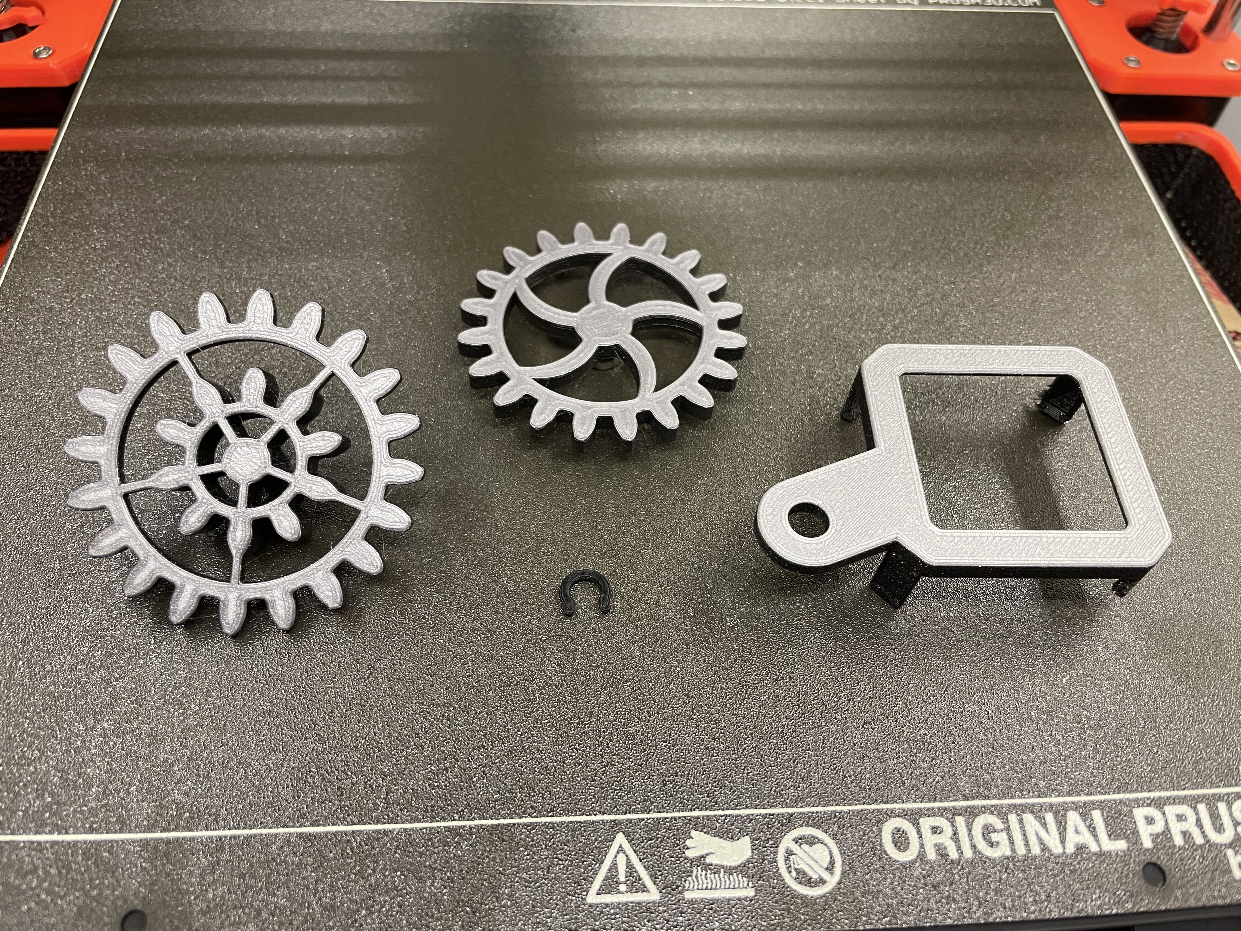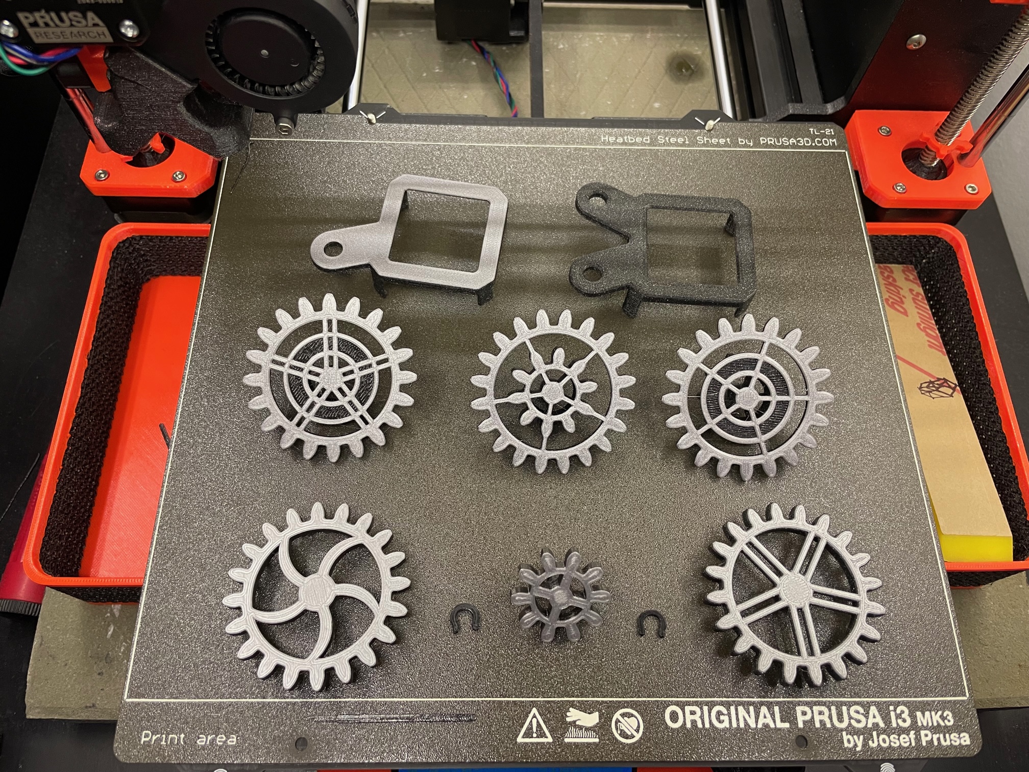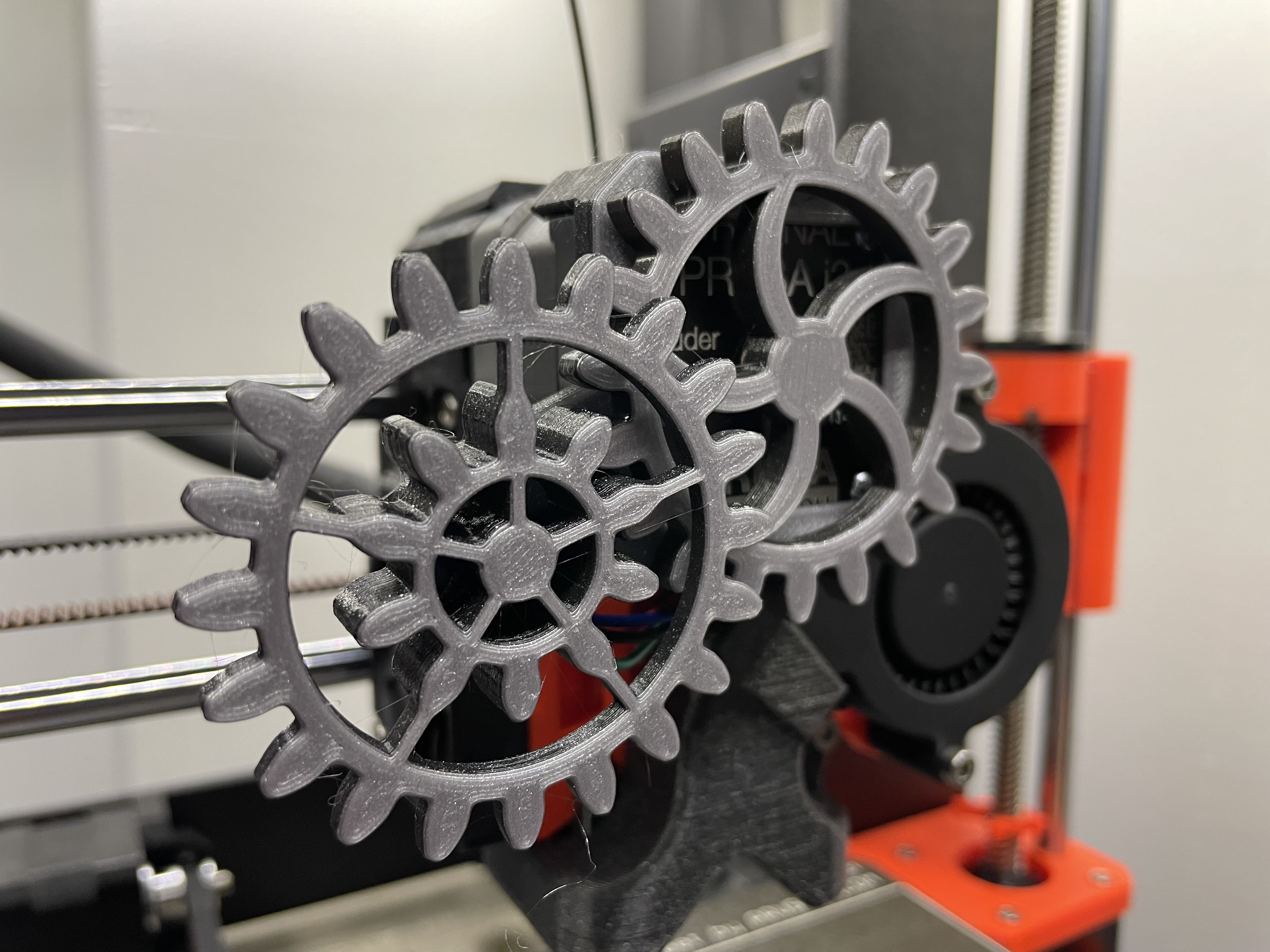Có sẵn một vài file gcode cho bộ hai bánh răng, bao gồm một file có đổi màu để tạo chút tương phản... và mình cũng đính kèm file gcode cho bộ ba bánh răng với sự khác biệt tương tự. Tất nhiên, như mọi khi, các file STL đều có sẵn cho những ai muốn tự cắt lát (slice) bản in của mình.