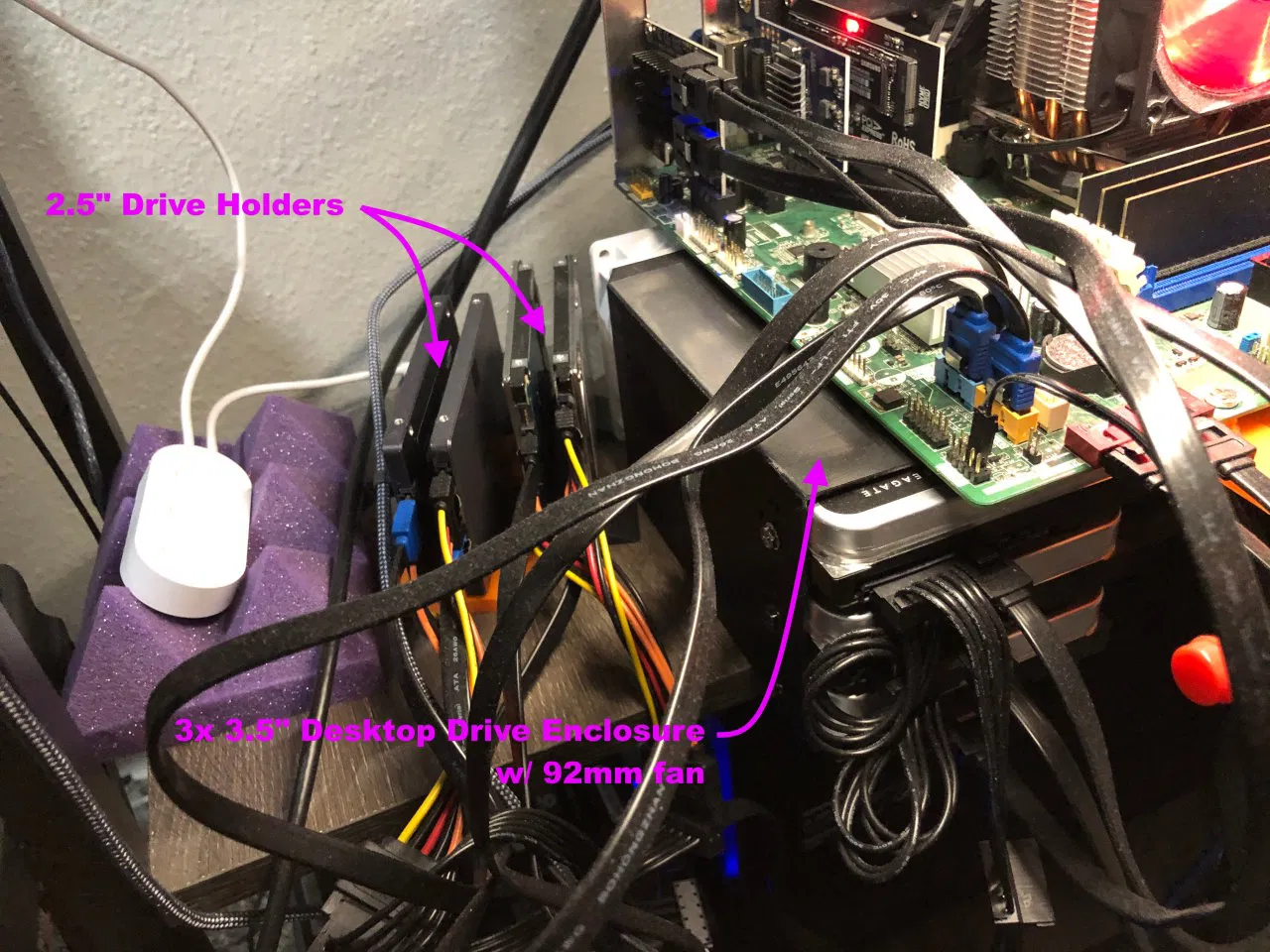 Phụ kiện bao gồm giá đỡ quạt, giá đỡ ổ cứng / SSD, các bộ đệm để hoạt động ở chế độ dọc và đầy đủ các bổ sung để tạo một máy chủ luôn bật.
