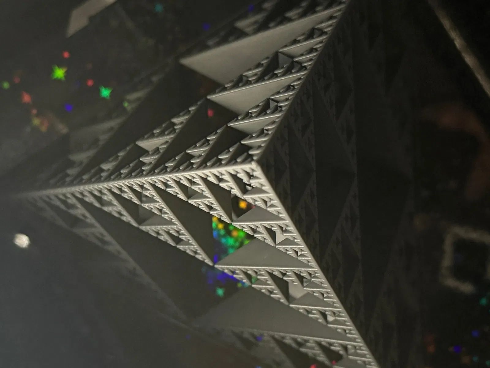 Từ góc nhìn từ trên xuống hoặc úp xuống, bạn có thể nhìn xuyên qua toàn bộ cấu trúc mỏng manh của nó, trong khi từ phía trước, nó lại trông giống như một khối hình học rắn chắc, phức tạp về mặt thị giác. Điều này làm cho nó vừa có tính ứng dụng vừa mê hoặc như một món đồ trưng bày hoặc một dự án sáng tạo cho những người đam mê fractal.